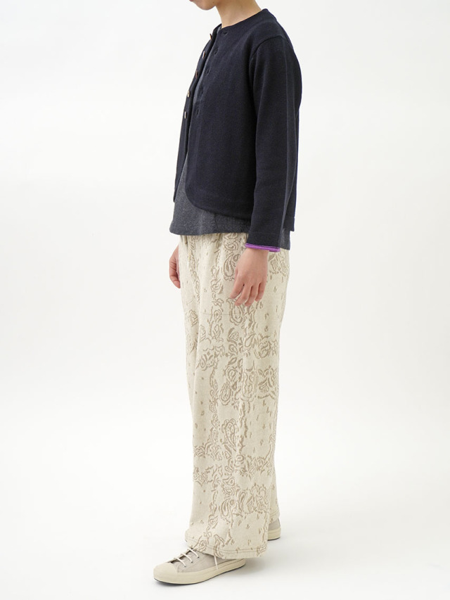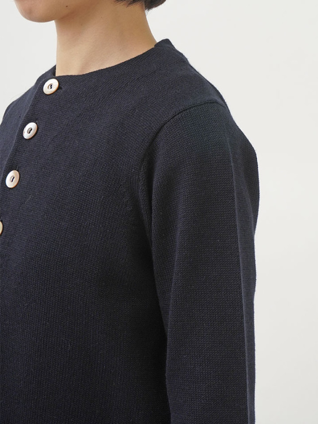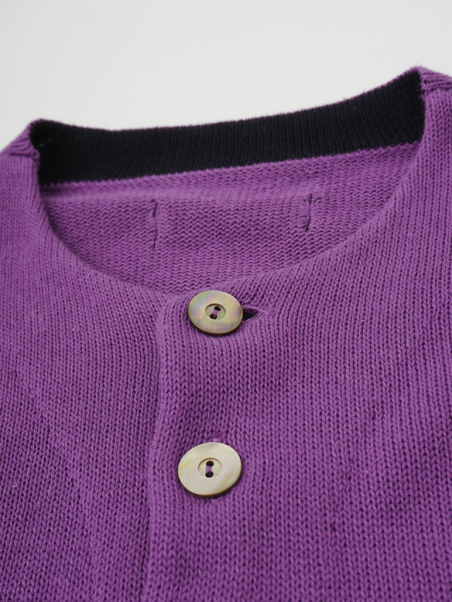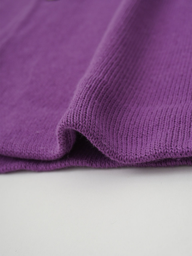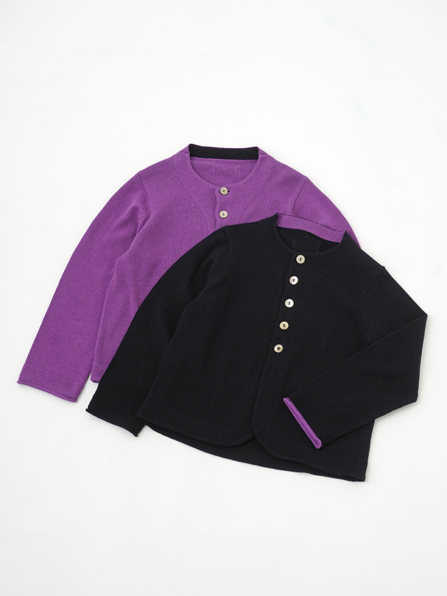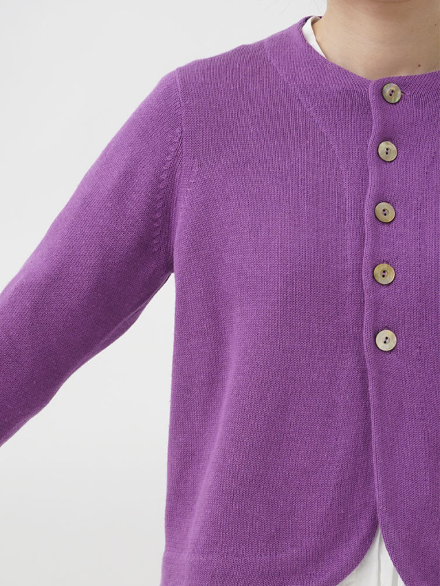 ラミーのさらっとした艶のある風合いと、コットンのなめらかさが混ざったオリジナルカラーのカーディガン。
