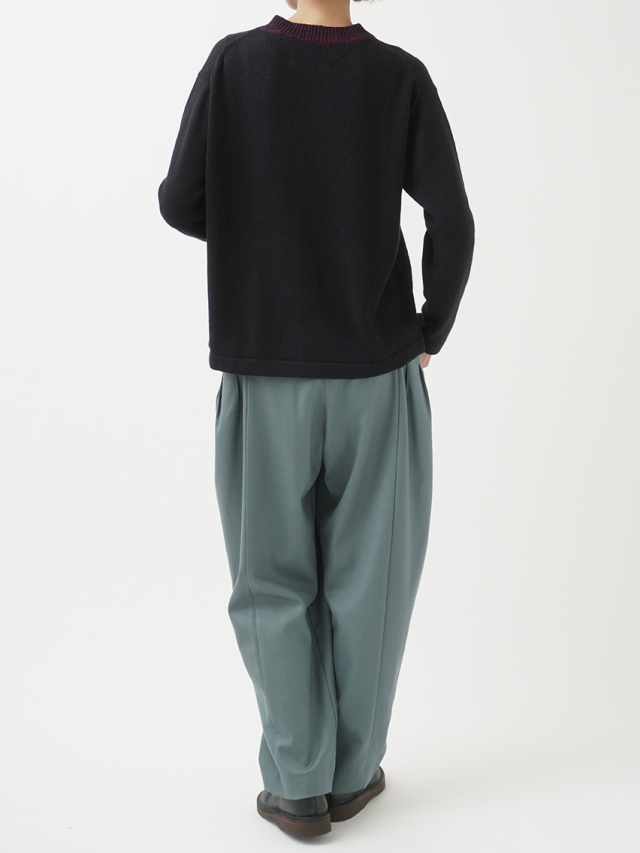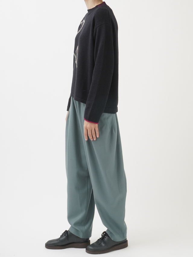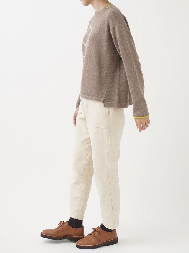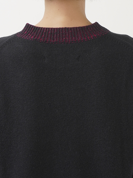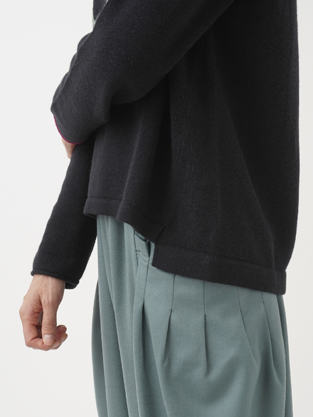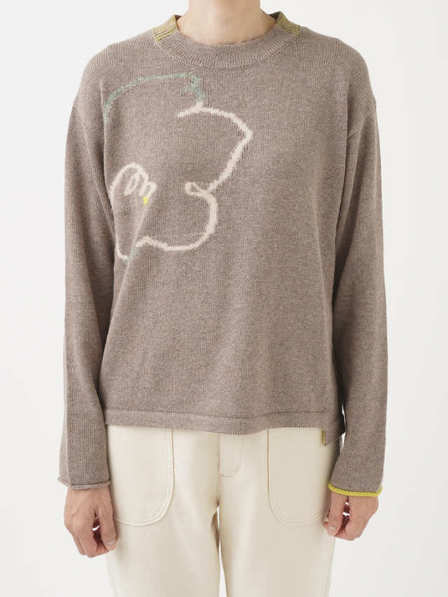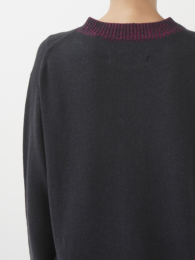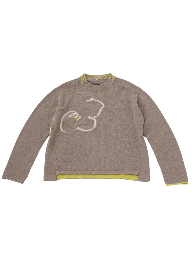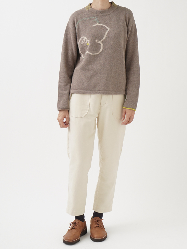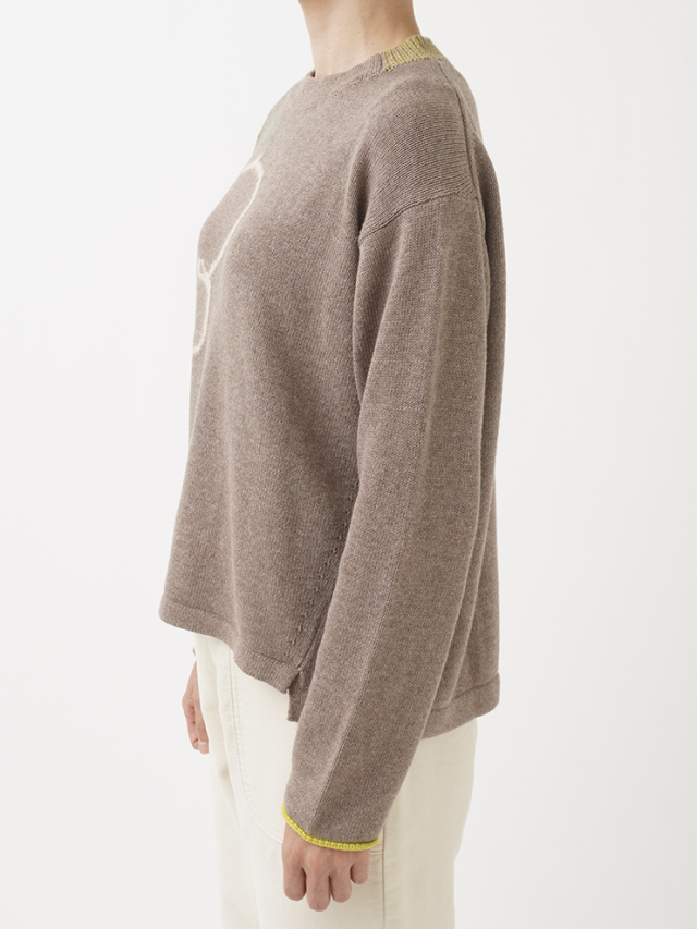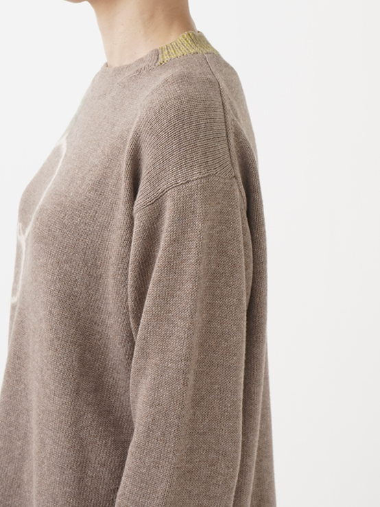 山茶花を一筆書きのような大胆なタッチで描いたニット。