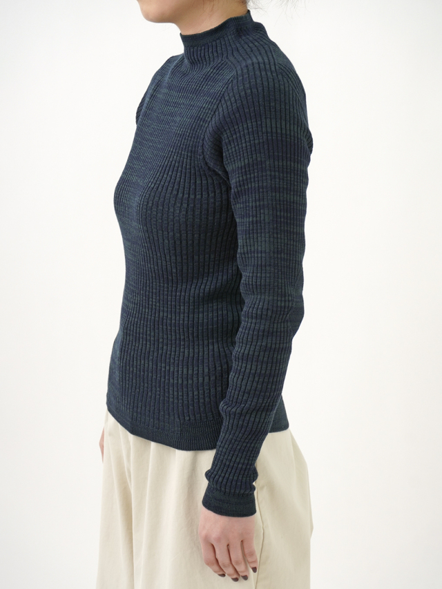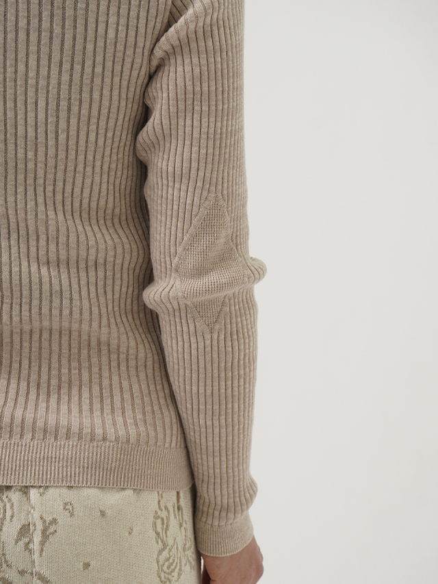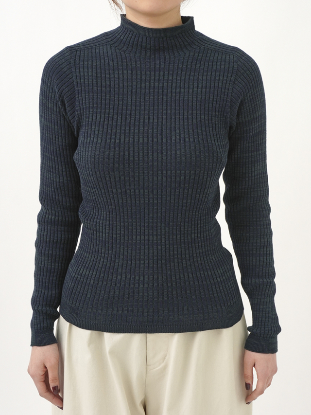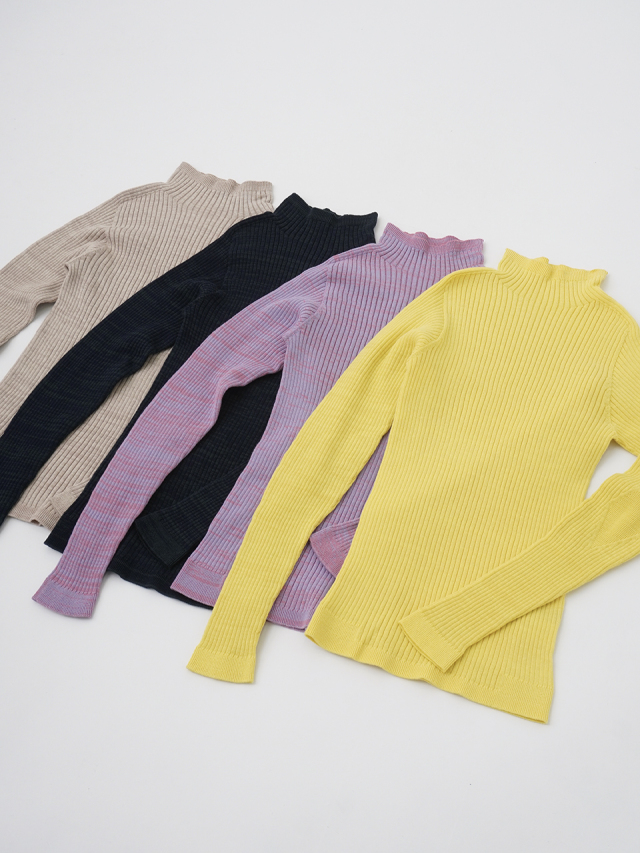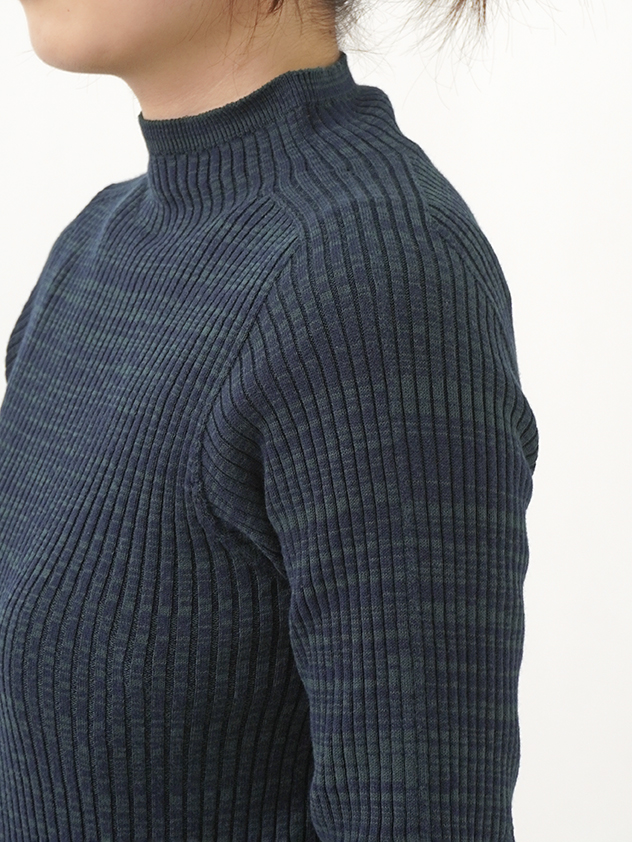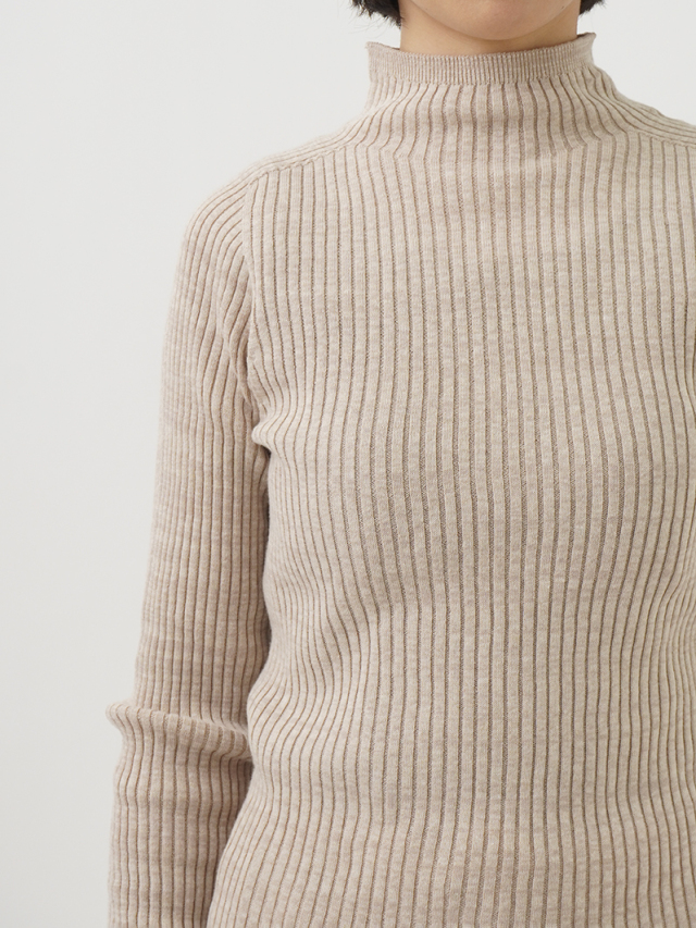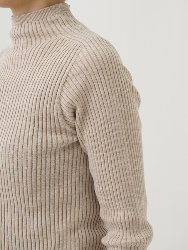からだのラインに沿うすっきりしたシルエットのリブ編みプルオーバー。