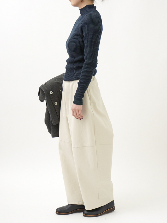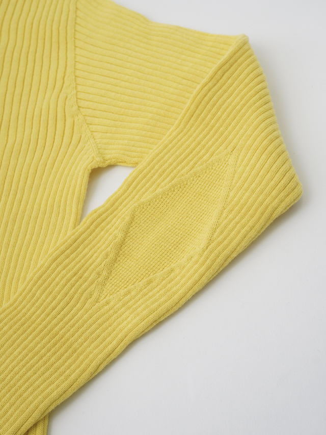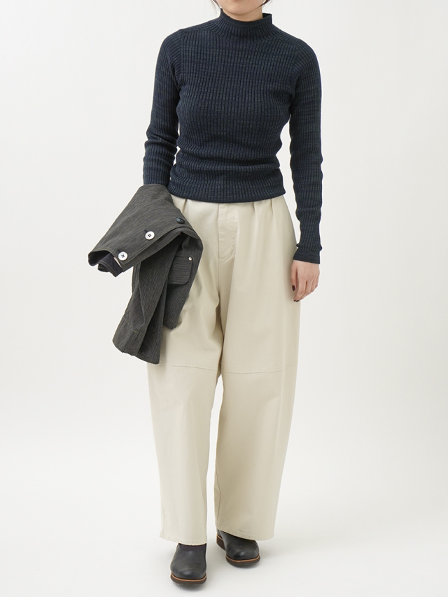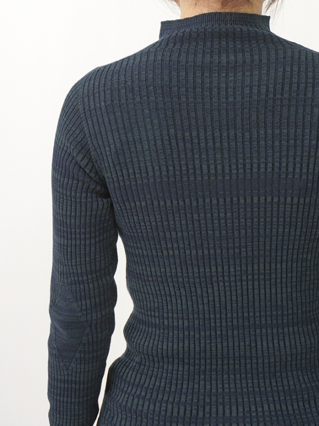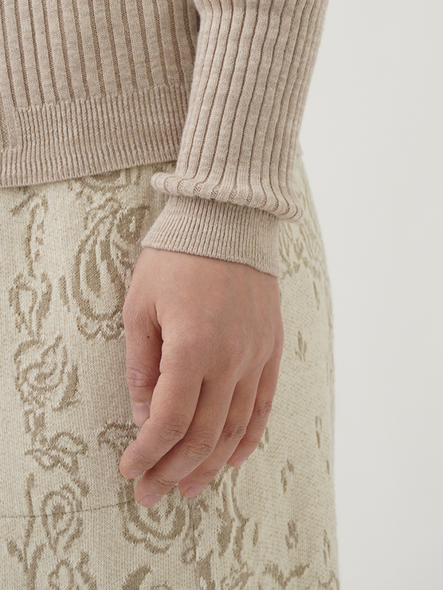 肌触りの良い柔らかなコットン素材を使用し、ホールガーメント技法により自然なフィット感のある着心地です。
