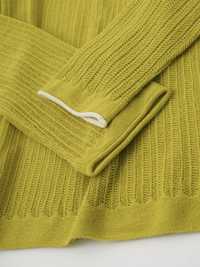 寒さの残る時期は、ワンピースやシャツにレイヤードして、暖かくなったら、インナーにノースリーブやキャミソールを合わせ初夏にかけて楽しめる一枚です。