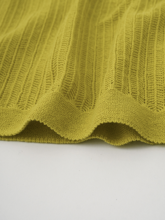 肌あたりの優しいコットン素材で、ヘリンボン柄にざっくりと編んだ透け感のある編地です。