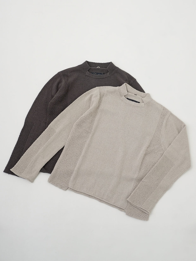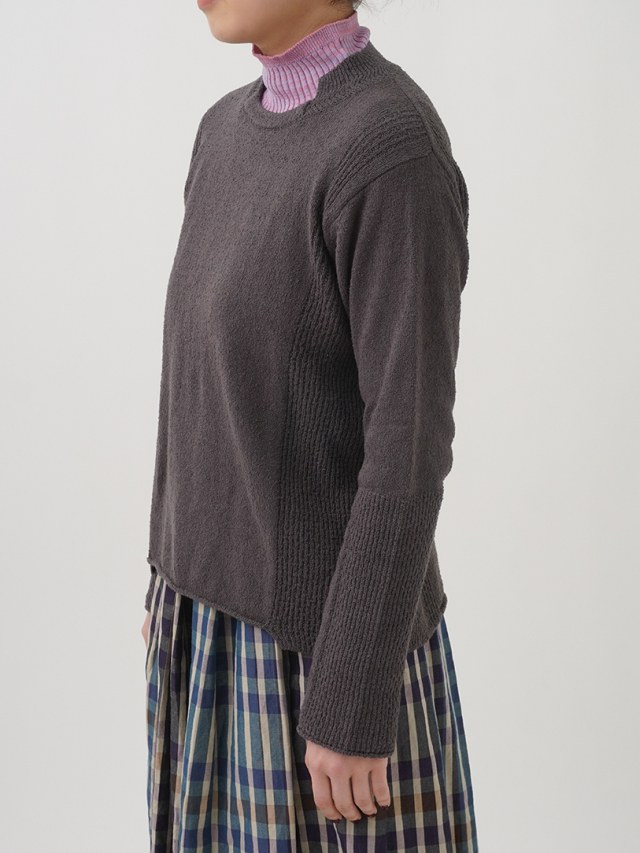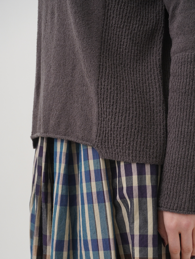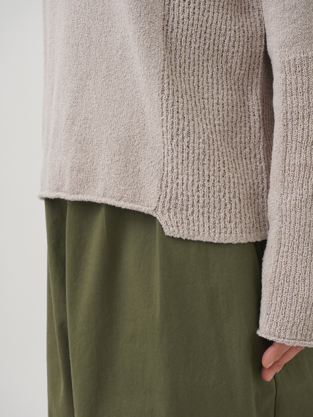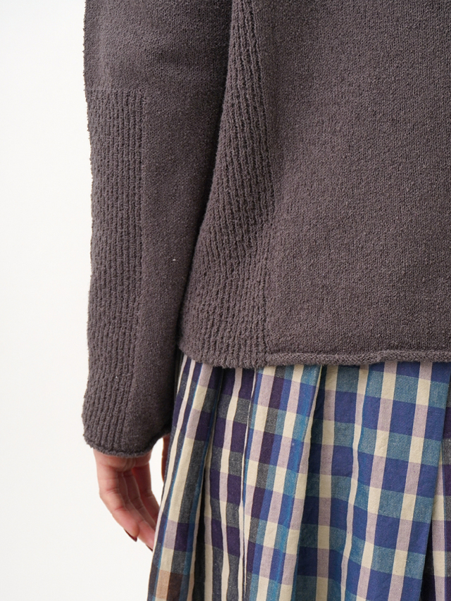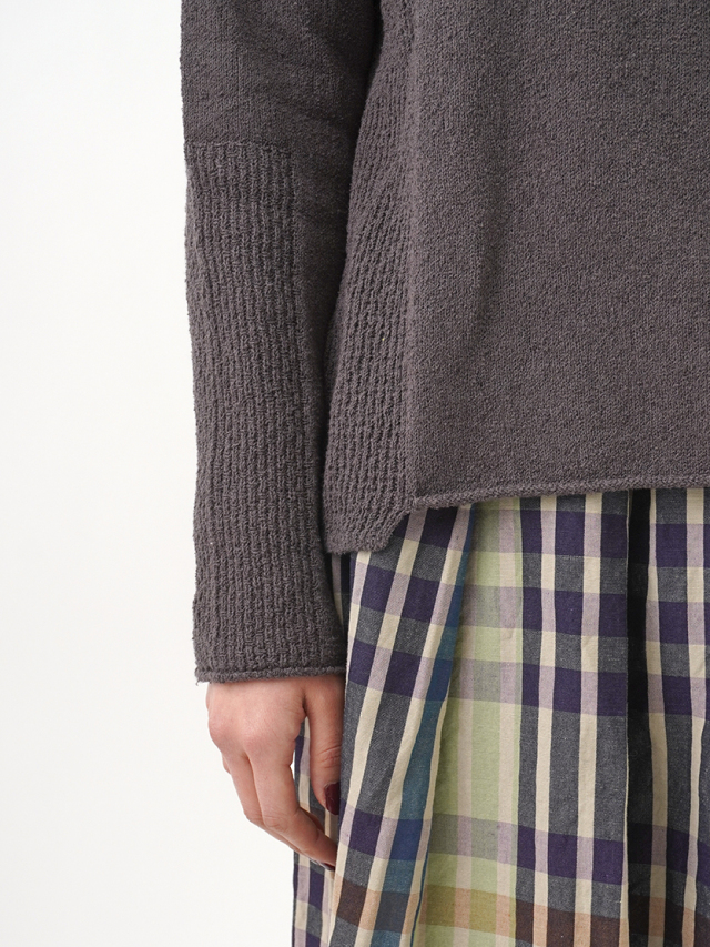 脇と袖の一部に、編地を切り替えてアクセントにしました。