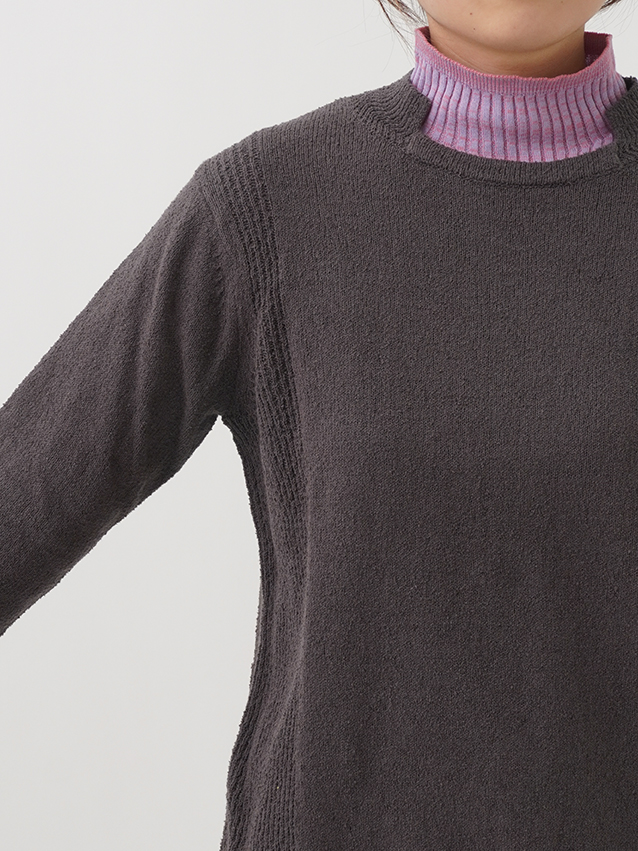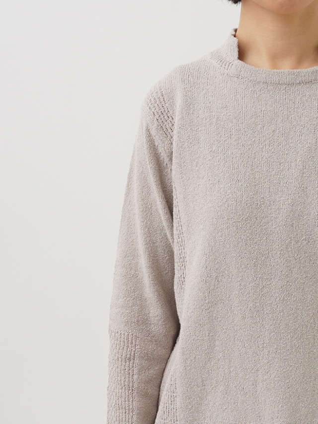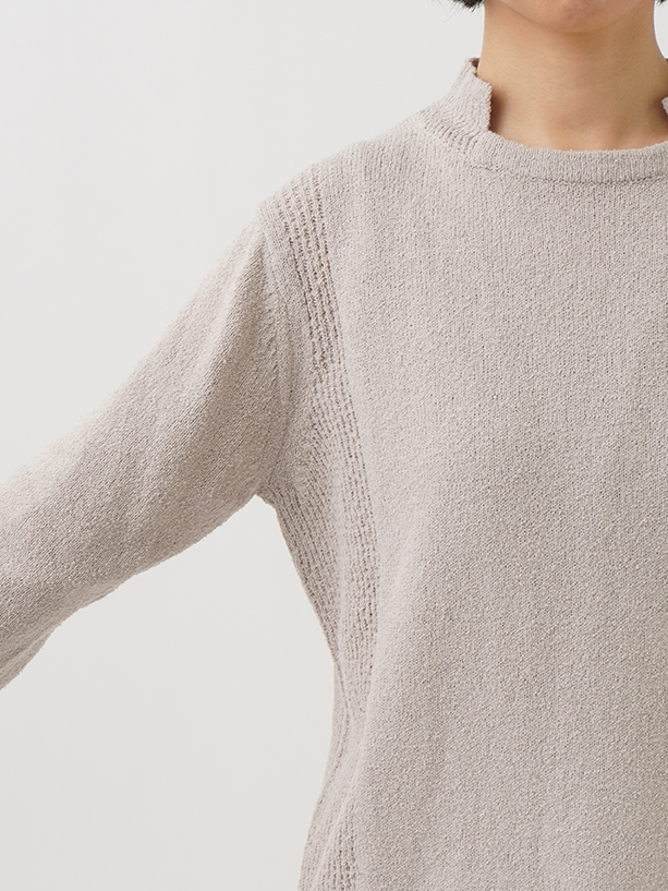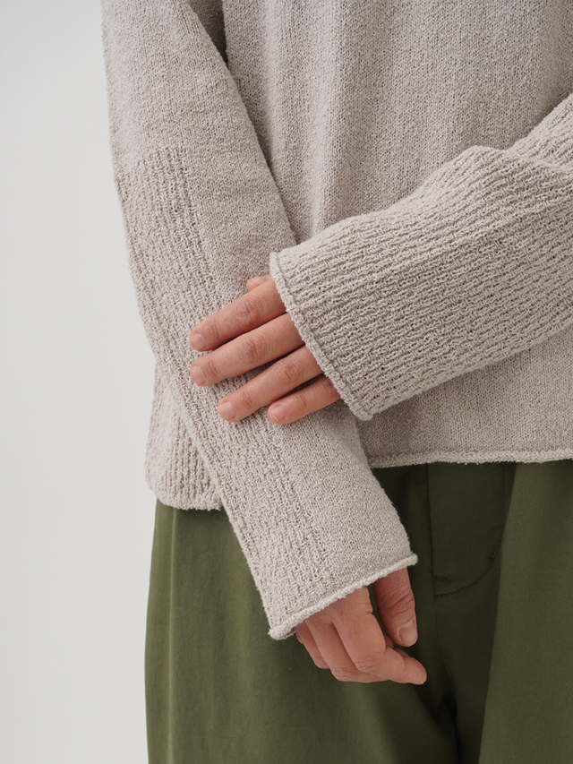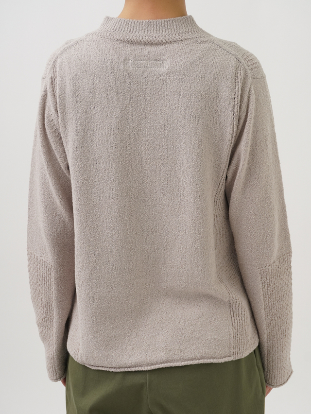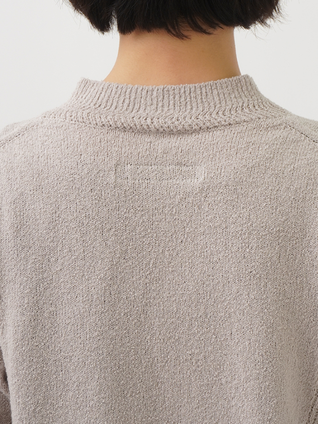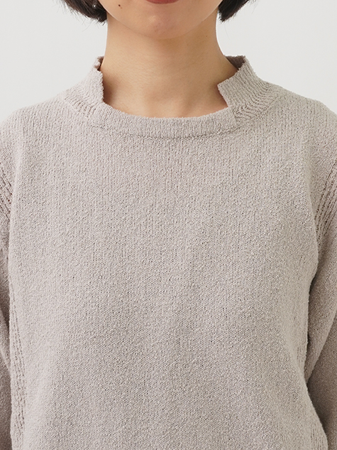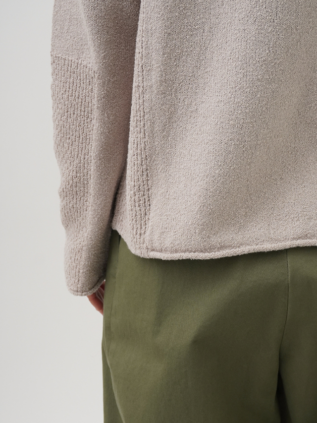 表情のあるループ糸を使用したボトル襟プルオーバー。