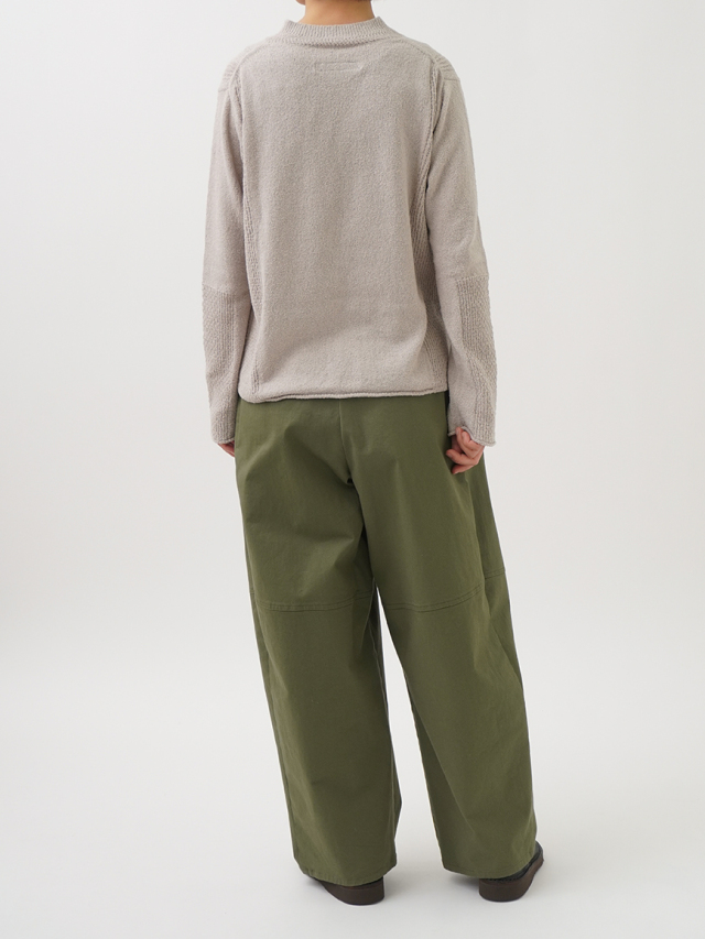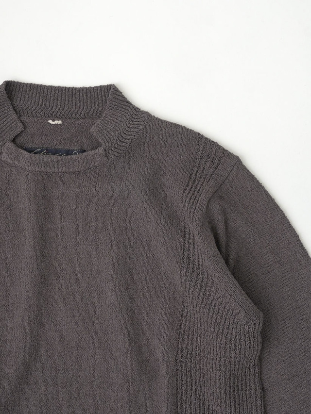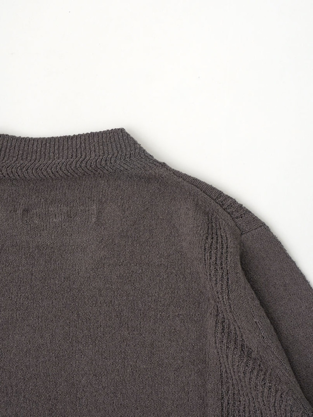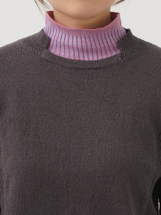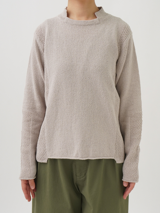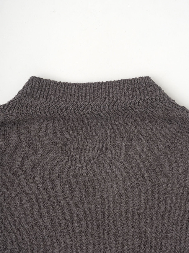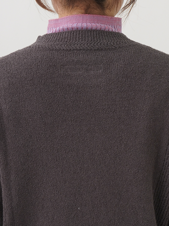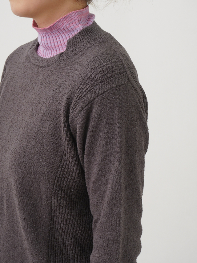 表情のあるループ糸を使用したボトル襟プルオーバー。