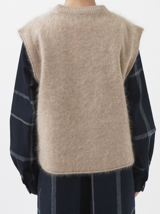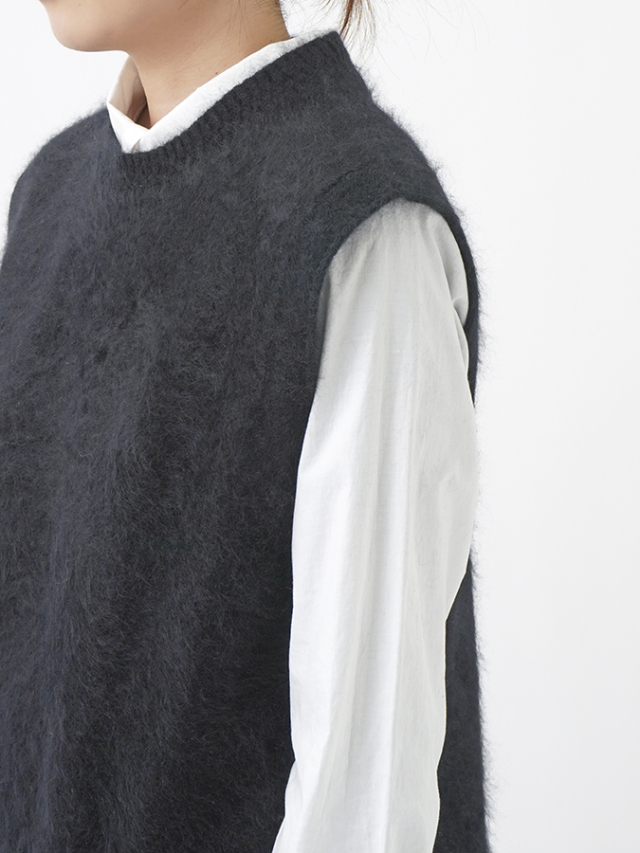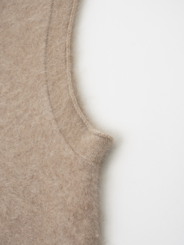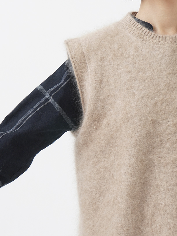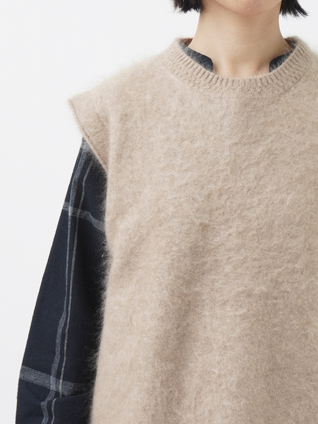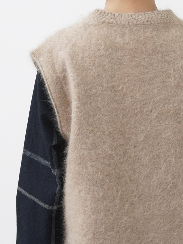 カシミヤ100%のファー加工を施した、軽く、着心地のよいニットベストです。