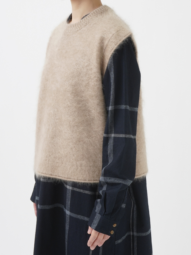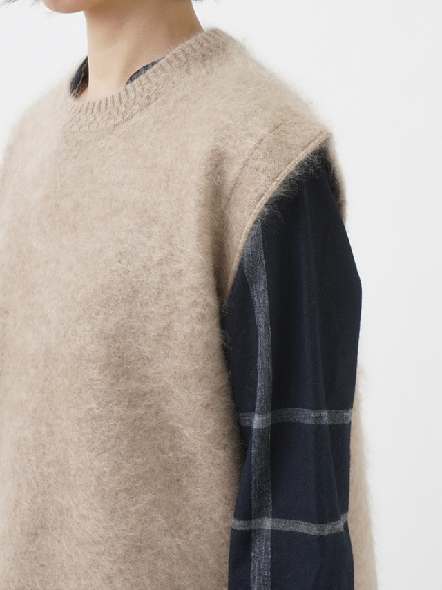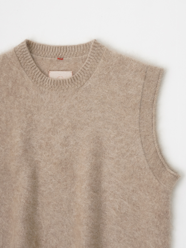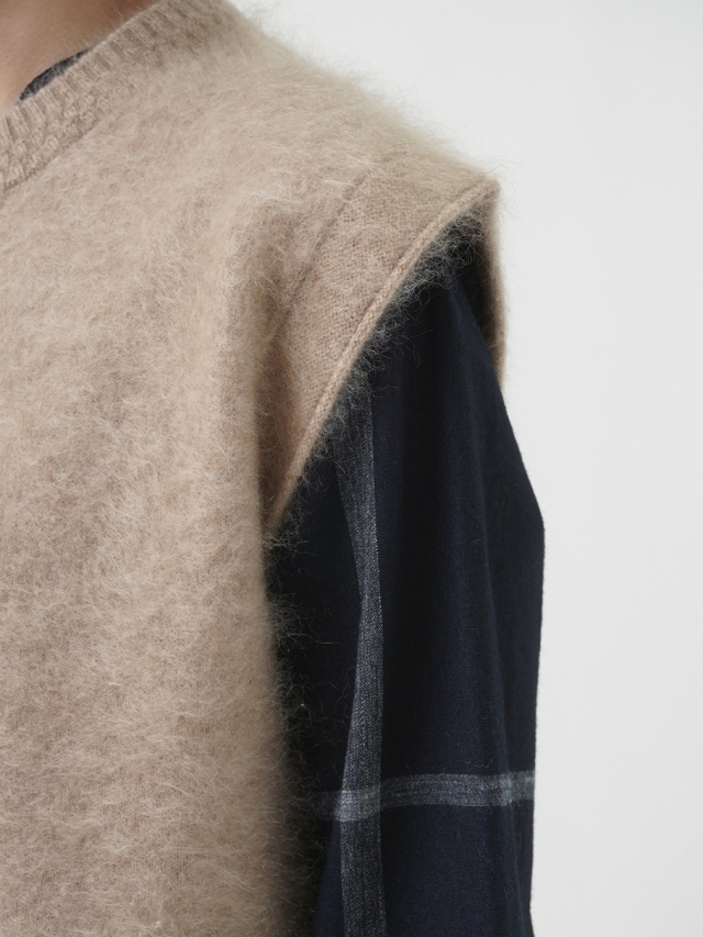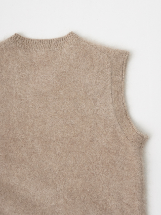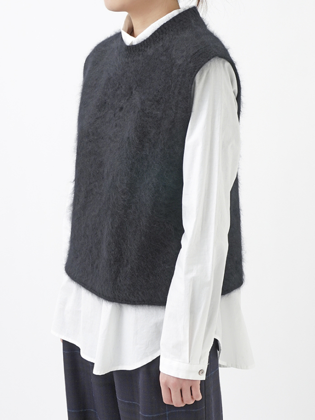 カシミヤ100%のファー加工を施した、軽く、着心地のよいニットベストです。
