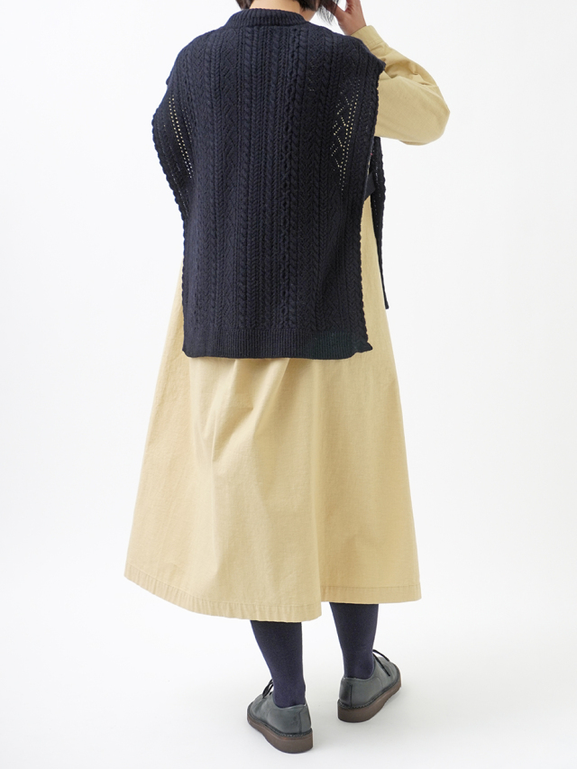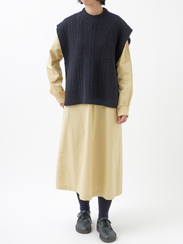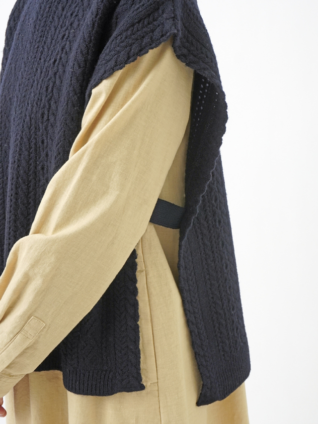 脇の開いたボックスシルエットは、シャツや薄手のニット、ワンピースなどに合わせ、幅広い着こなしが楽しめます。