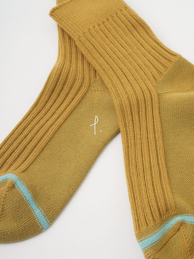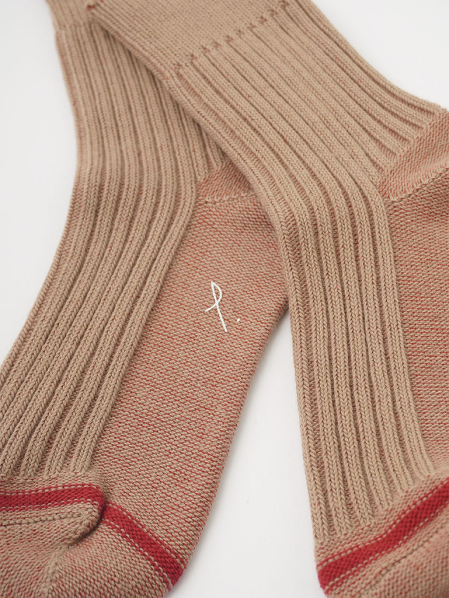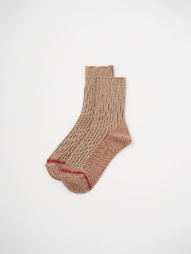 通常は裏になる面をあえて表にし、2色の色がちらちらと見えるようデザインしたリブソックス。