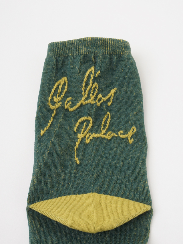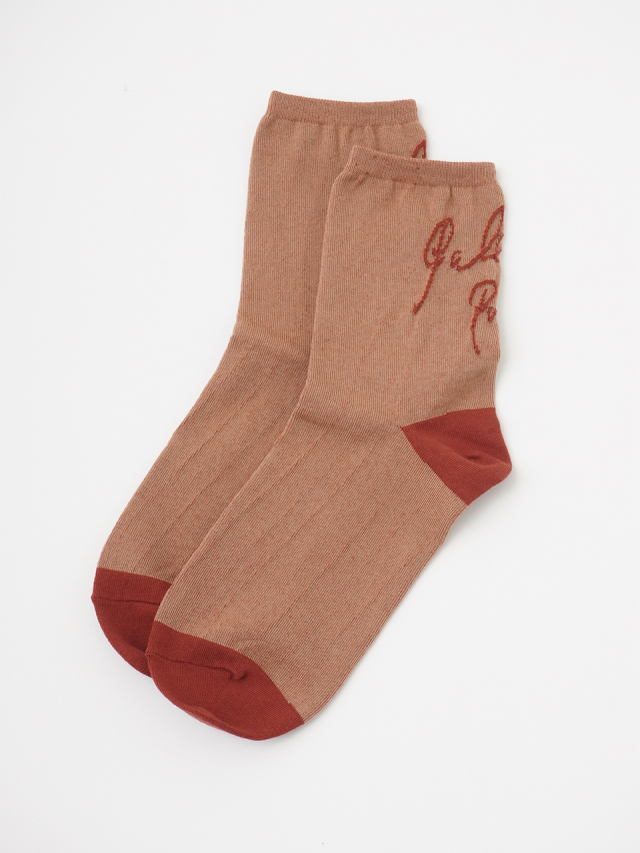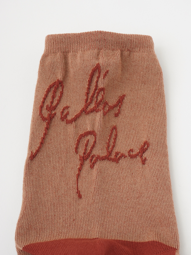 ぽこぽこと立体感のあるロゴをバック部分に入れたコットンソックス。