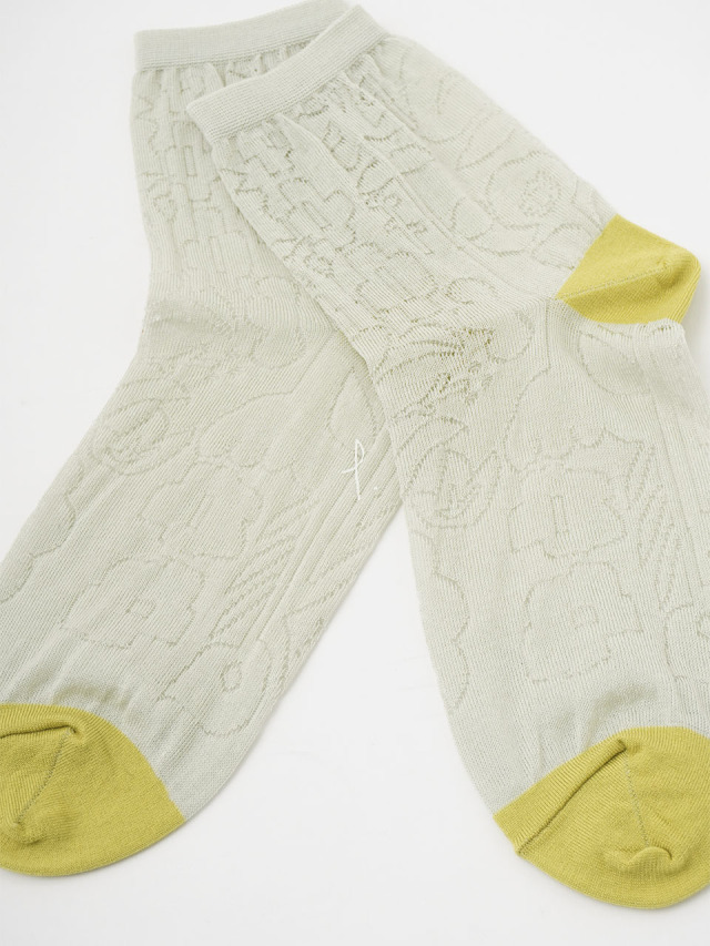 おおらかで抽象的な花を表現した夏景色柄ソックス。