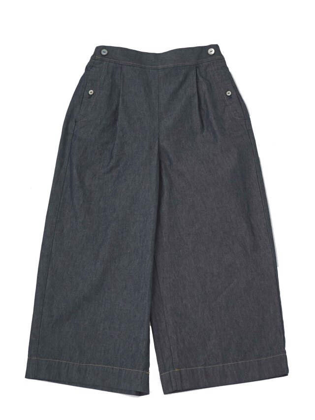 トップスをインしてスタイリングすると、ウエストのボタンがアクセントになります。