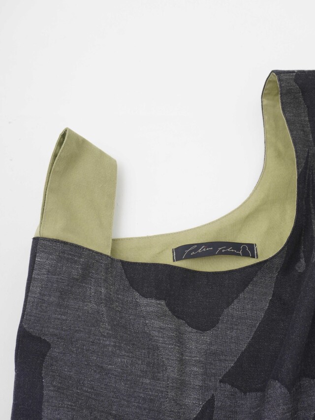 片側の持ち手に、もう片側の持ち手を入れるアシンメトリーなデザインが特長です。