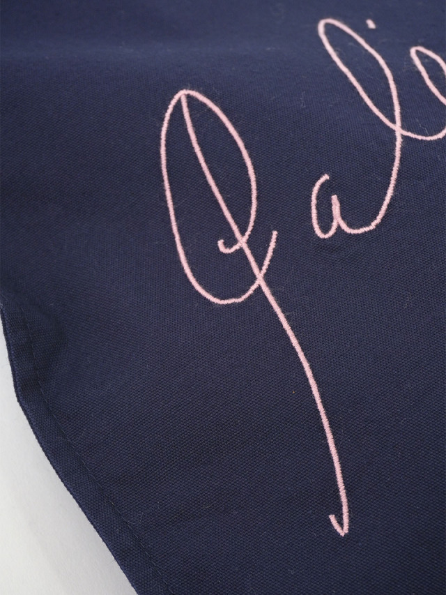 ネイビーの地×ピンクの刺繍、グリーン×イエロー、カラシ×ピンクの3色展開。