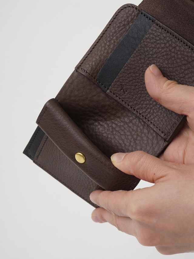 やわらかさと丈夫さを兼ね備えた、シボ感のある上質な兵庫県の姫路レザーを使用したコンパクト財布。