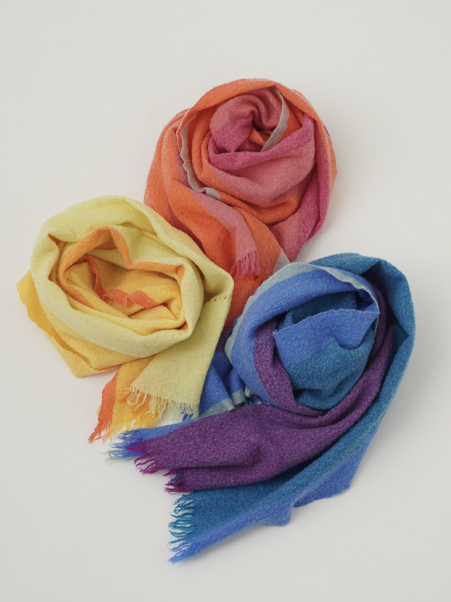 ふわっとした軽やかさと、目を惹く色使いが魅力のウールストール。