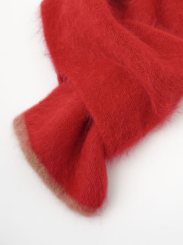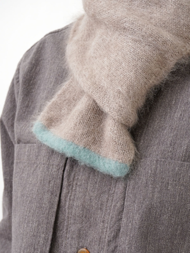 軽く柔らかで艶のあるカシミヤを使用し、ファー加工を施したマフラー。