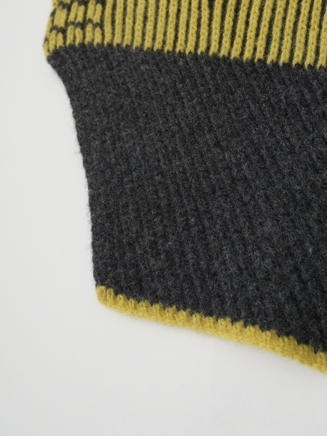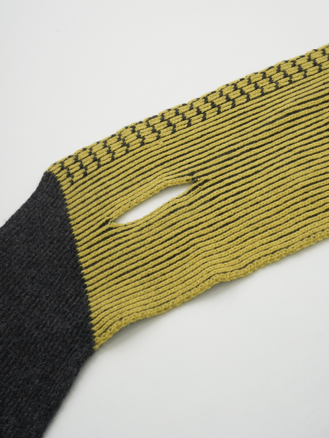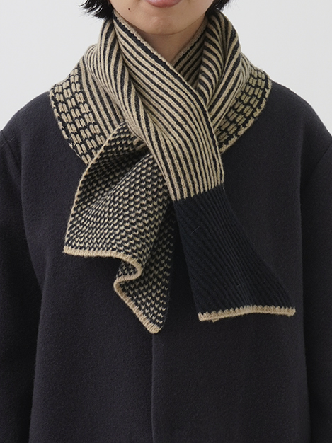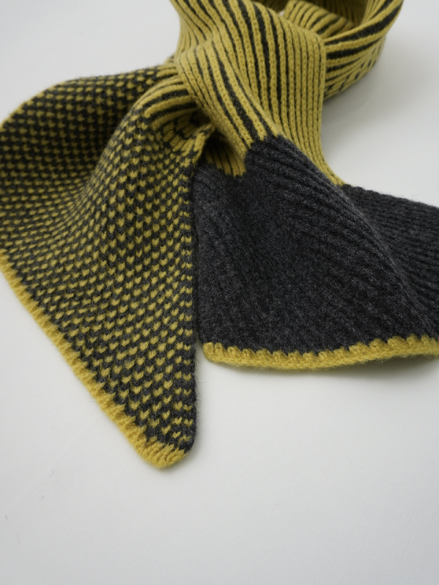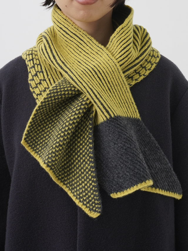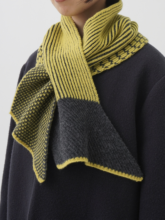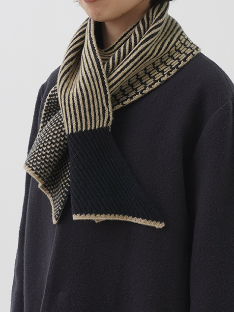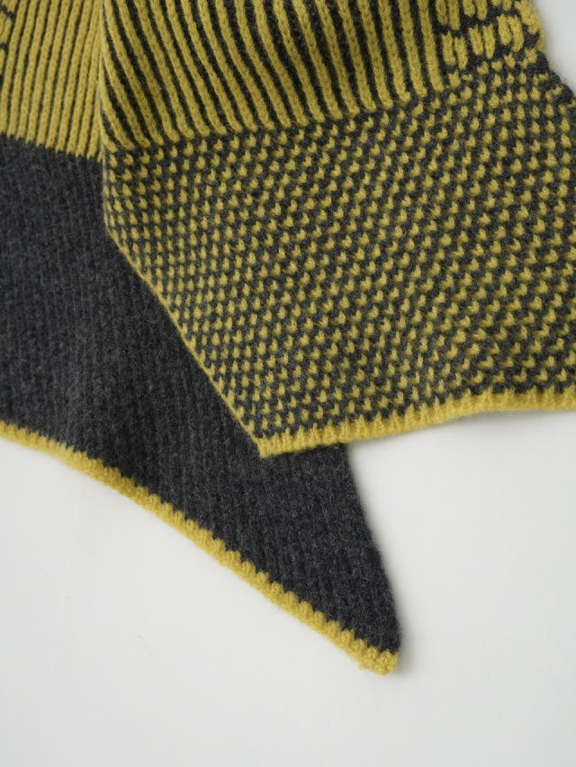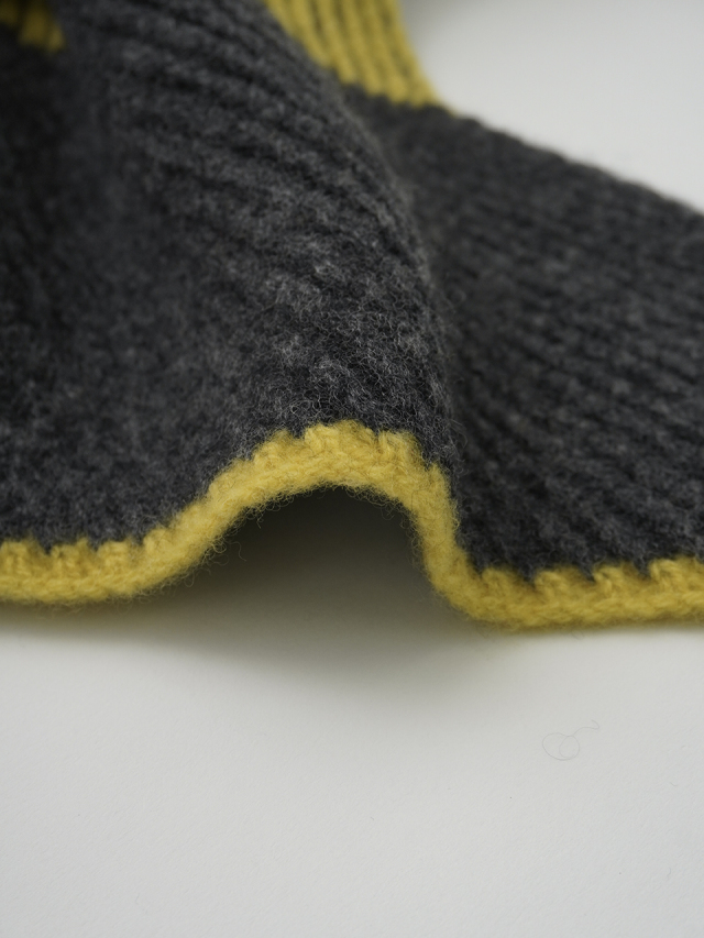 裏と表で色が反転する編地は、その日のコーディネートによって、両面楽しめるデザインです。