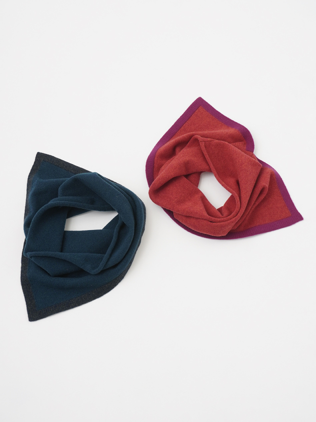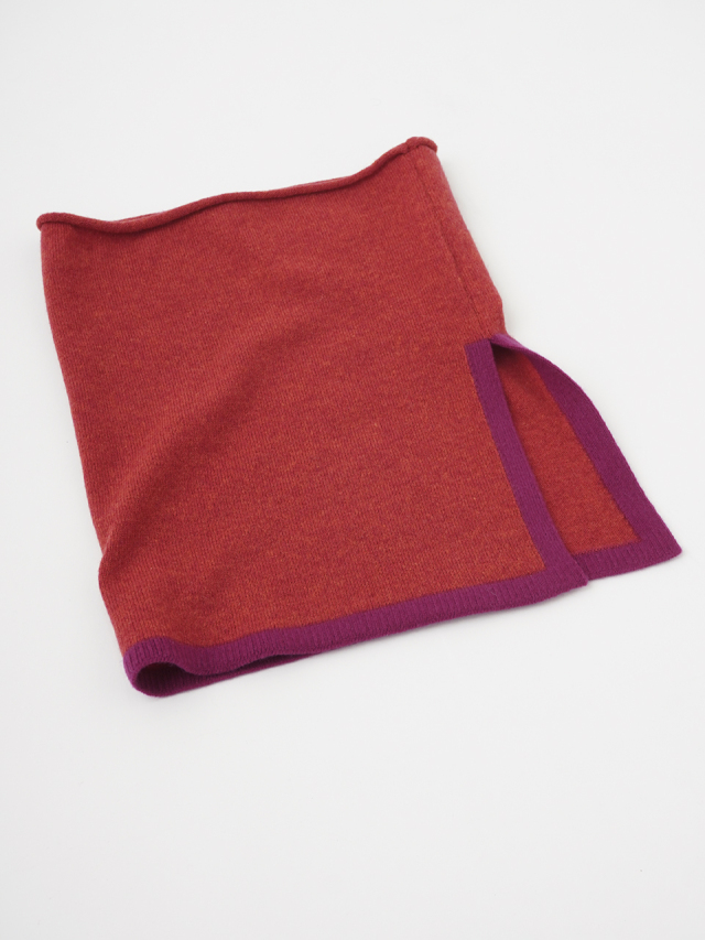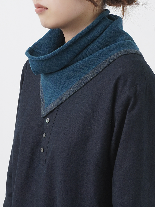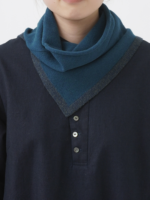 片側にスリットを入れた、デザイン性のあるスヌード。