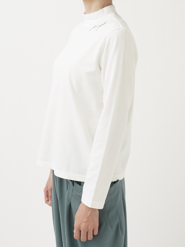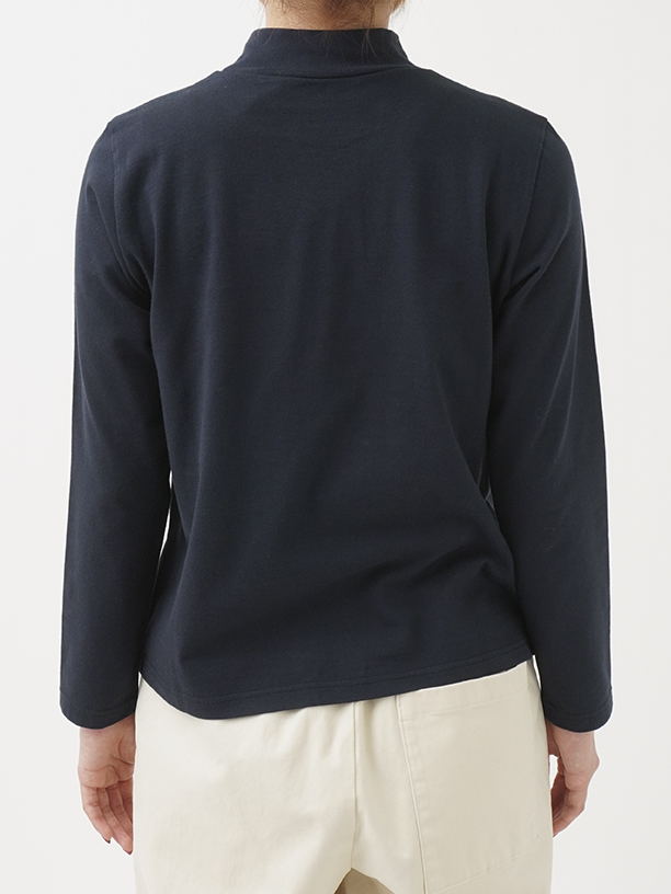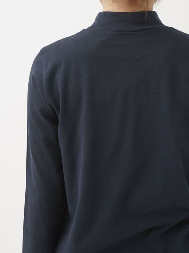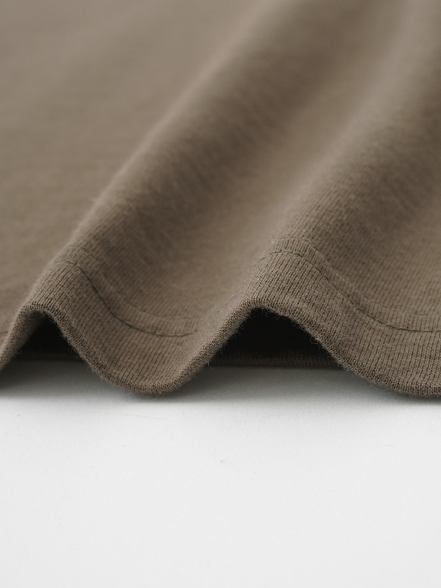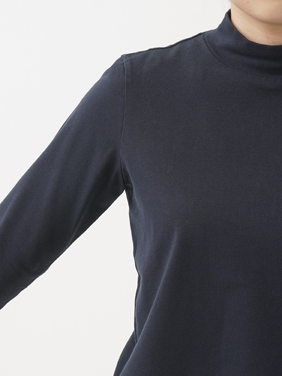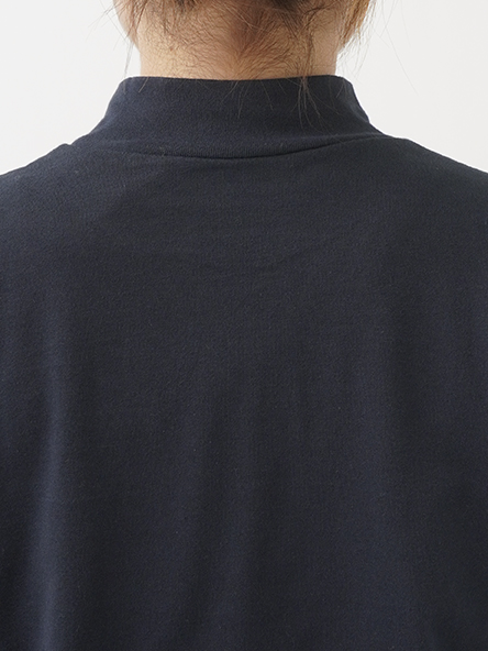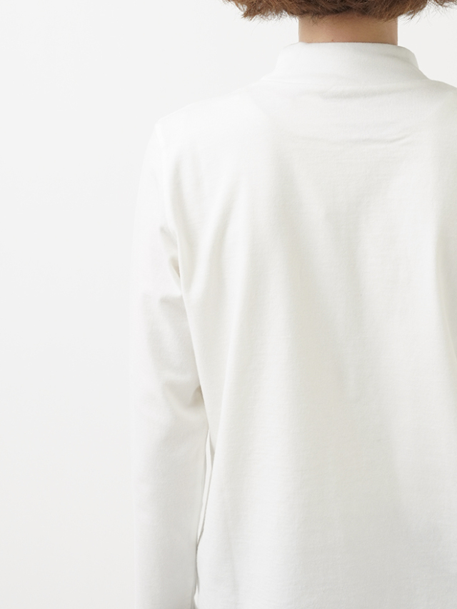 襟に伸縮性のあるフライスに切替えた、なめらかなコットン素材です。