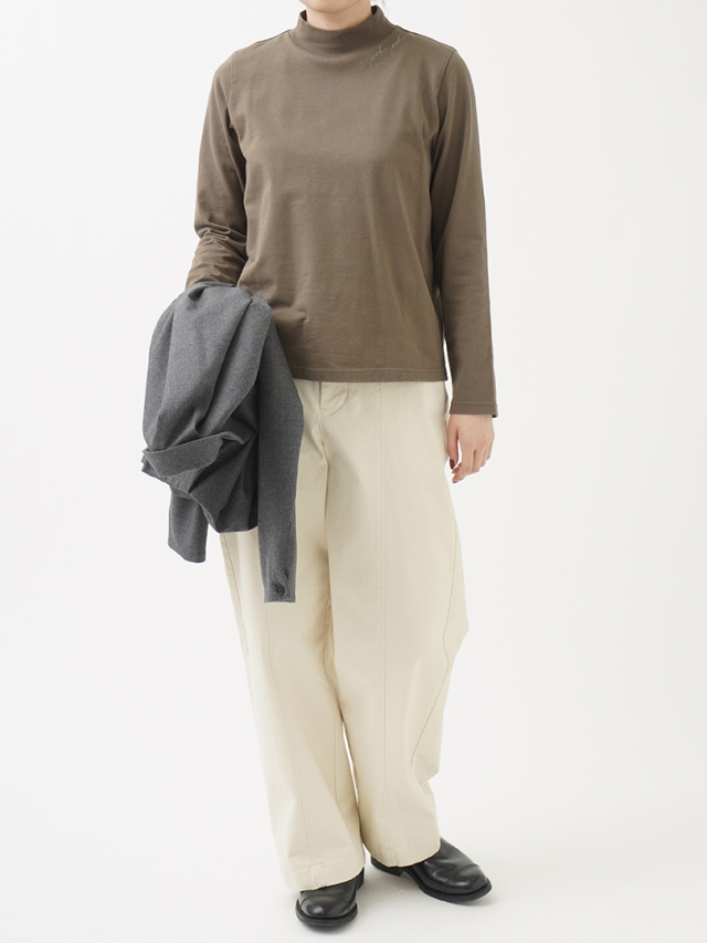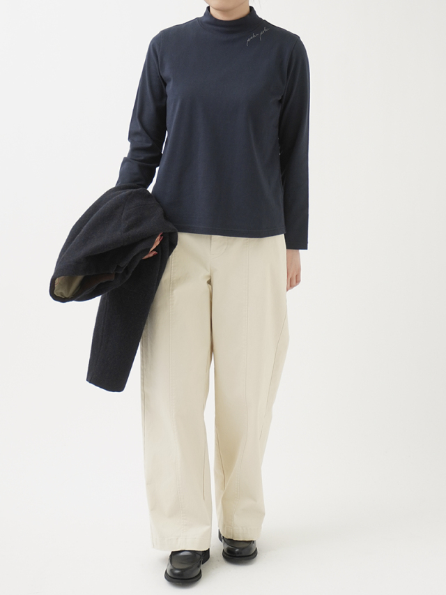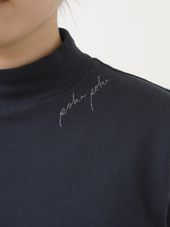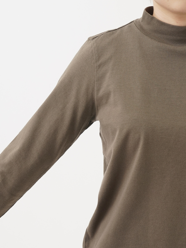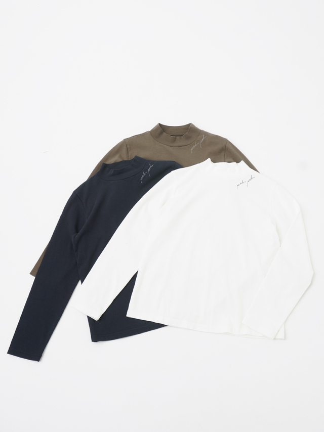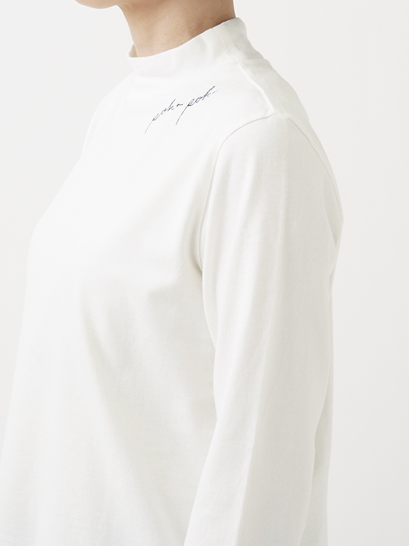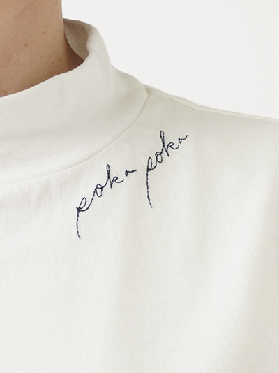 襟に伸縮性のあるフライスに切替えた、なめらかなコットン素材です。