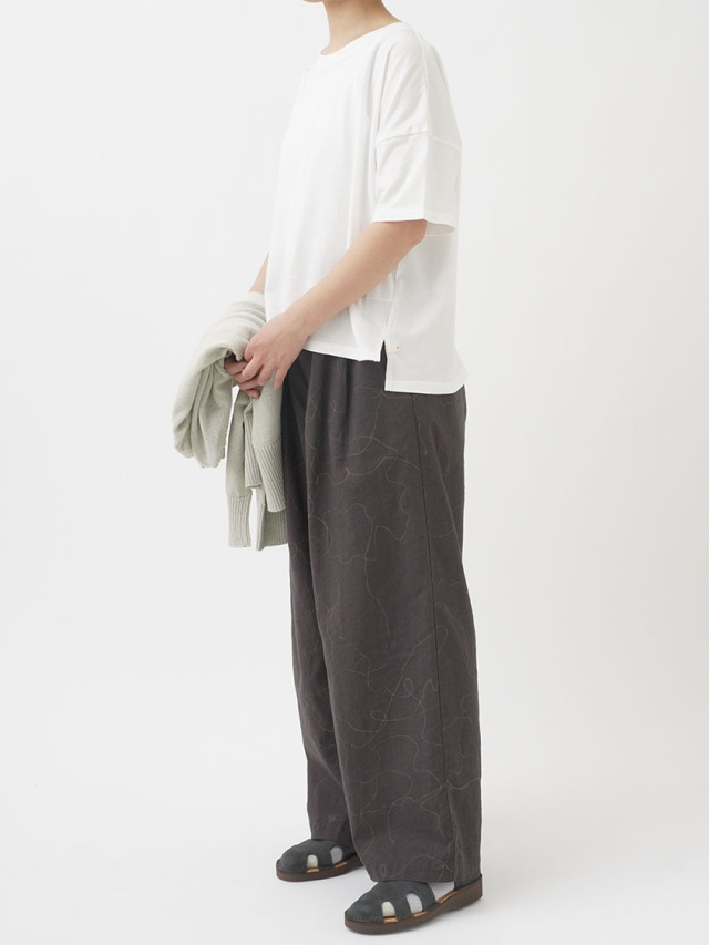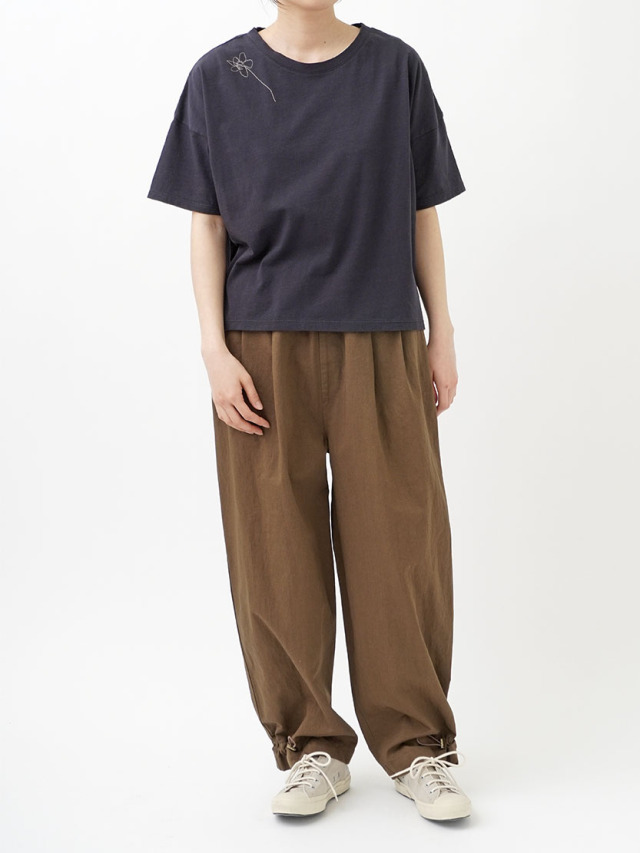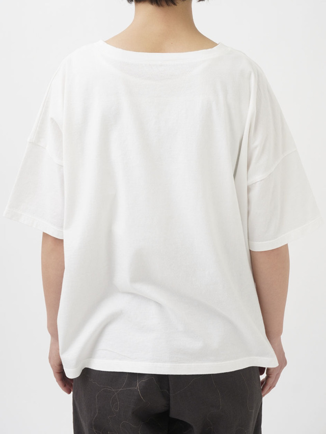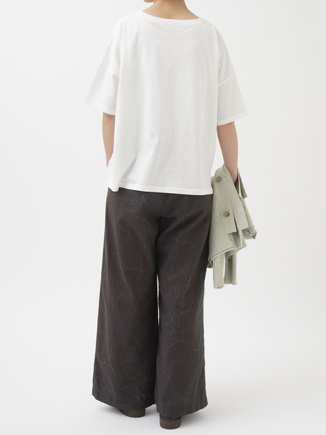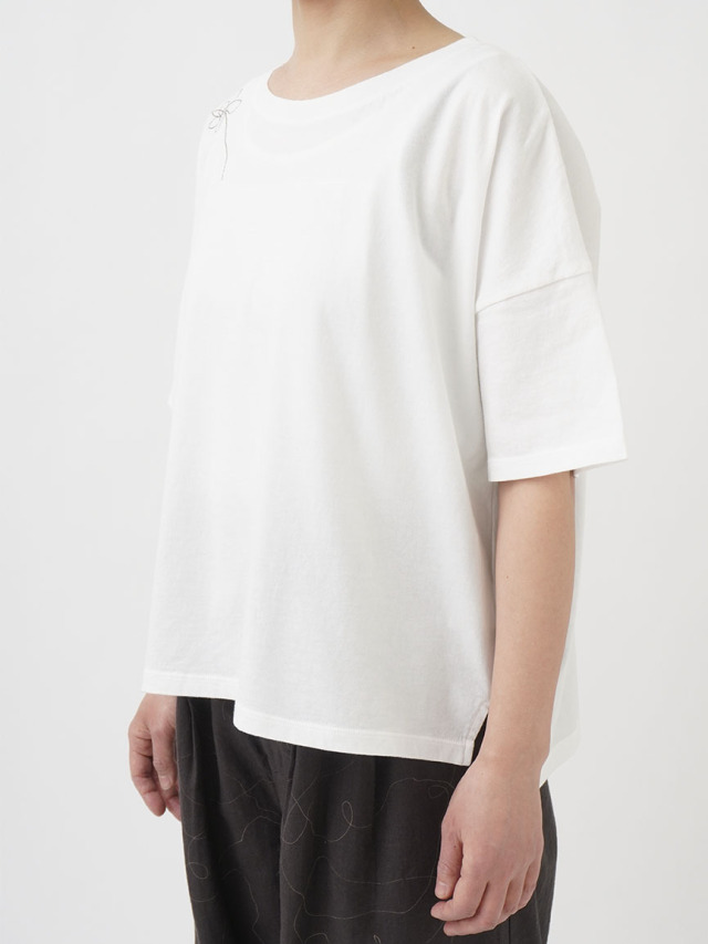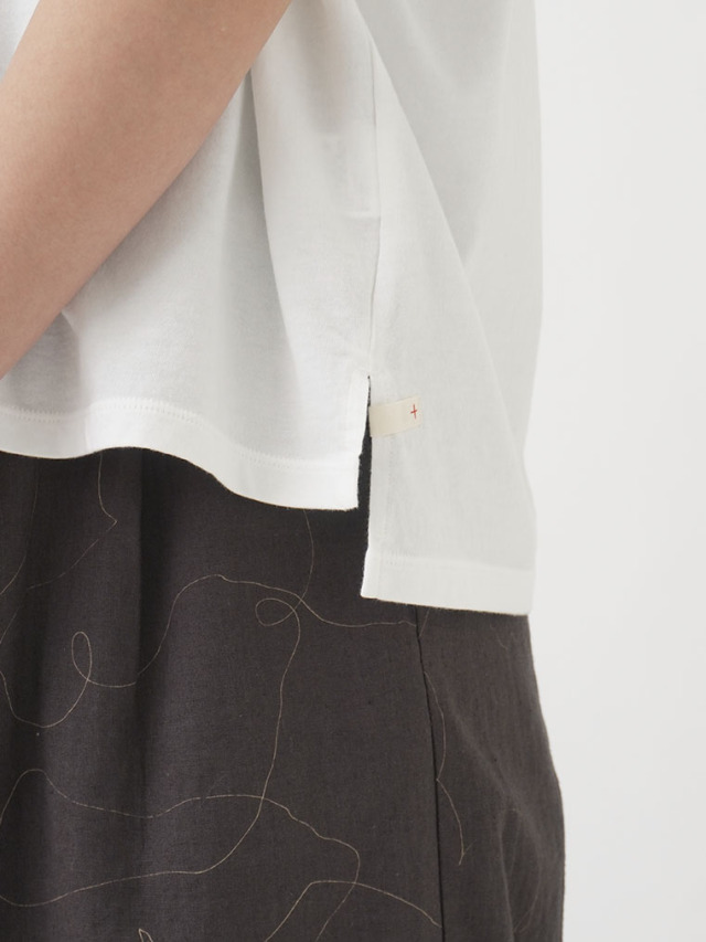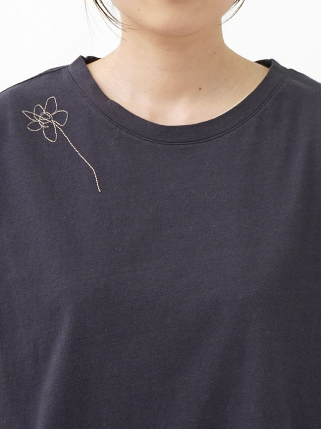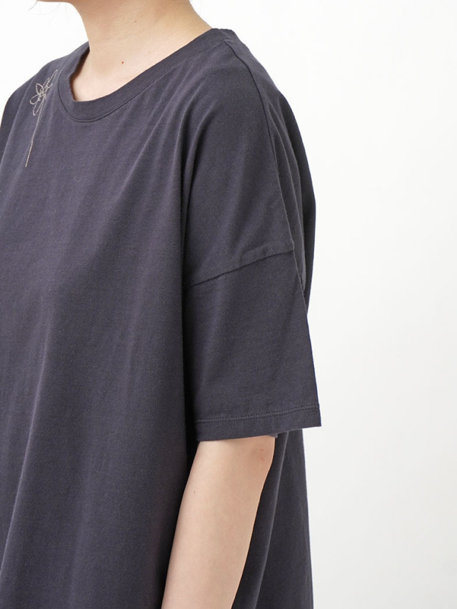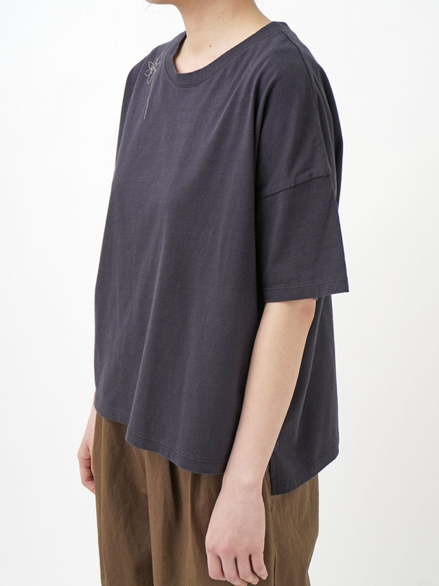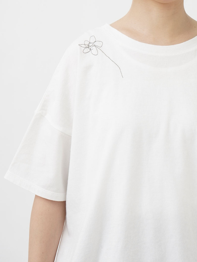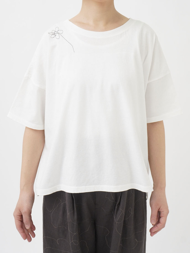襟元に、ラフなドローイングの一輪の野花を配したTシャツ。