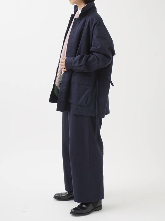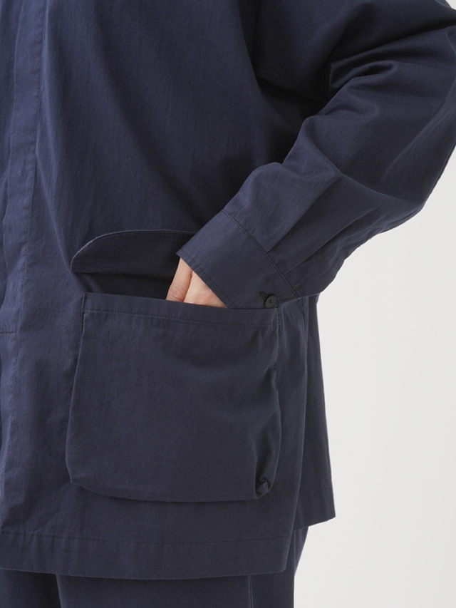 すっきりとクリーンな印象の比翼仕立てに、立体的なポケットがポイントです。