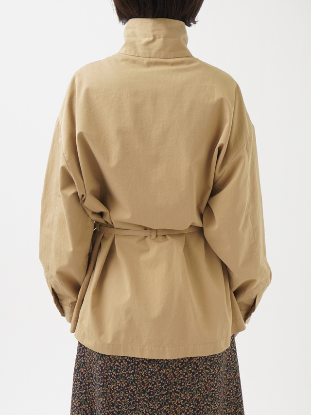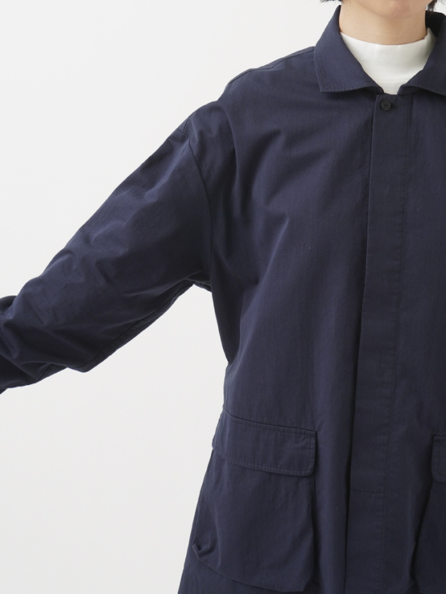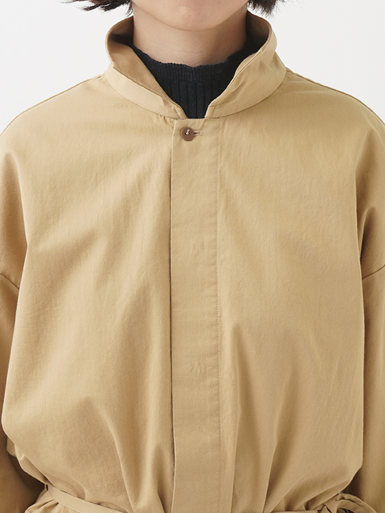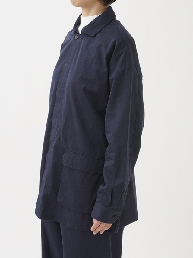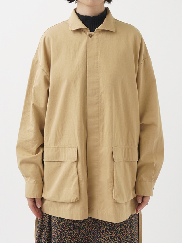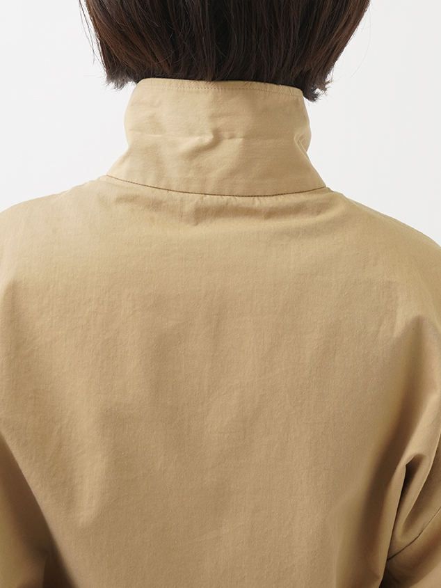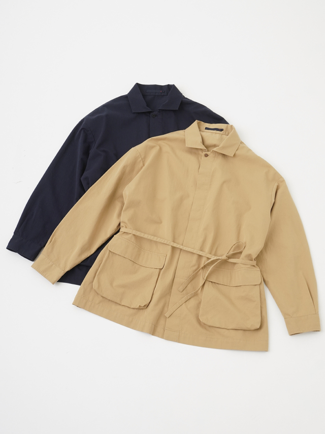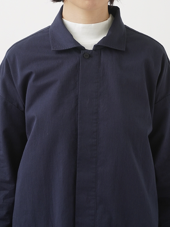 落ち着いた光沢があり、なめらかな手触りが特徴のコットン素材のシャツブルゾン。