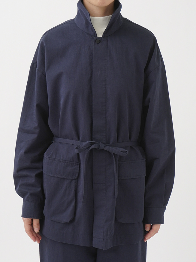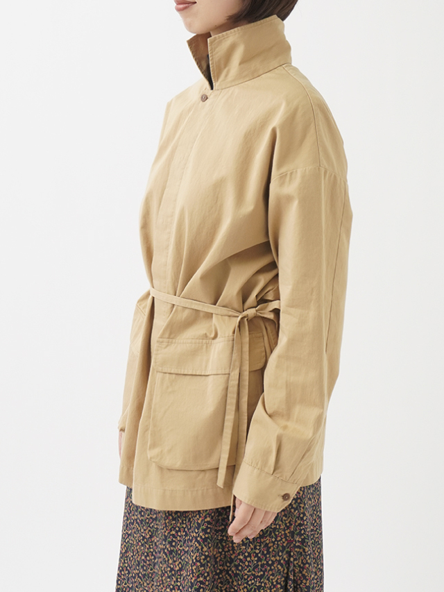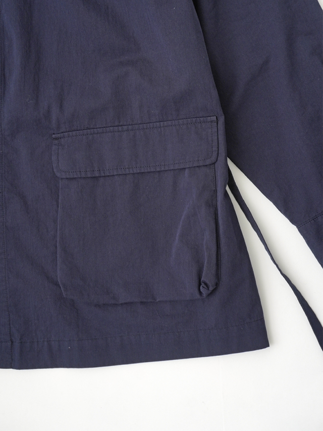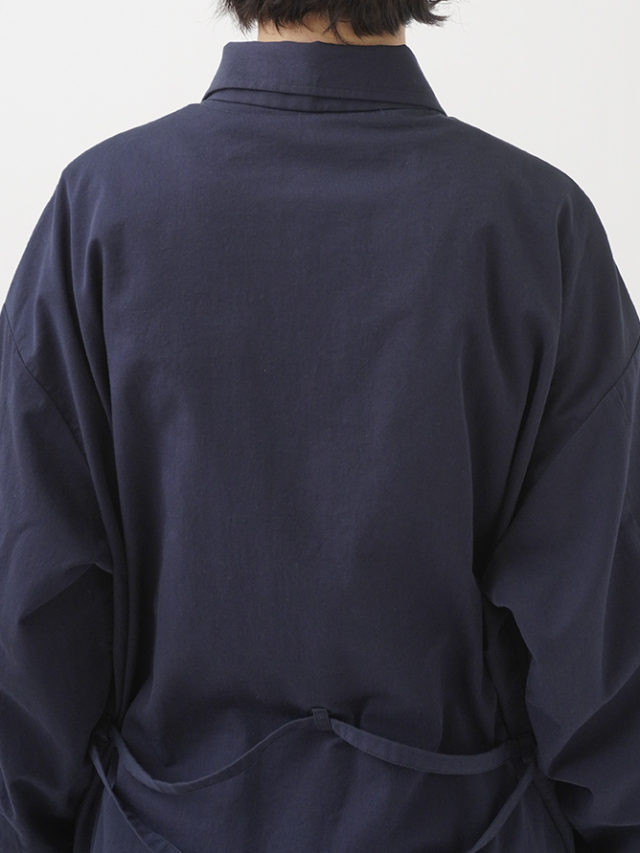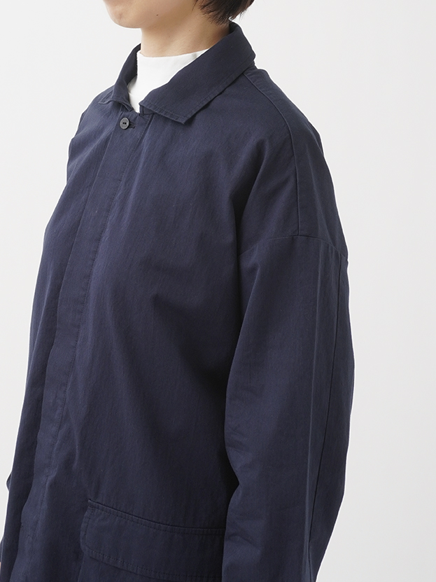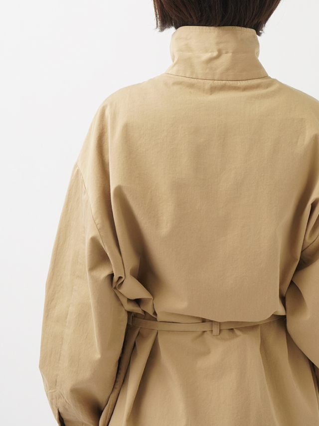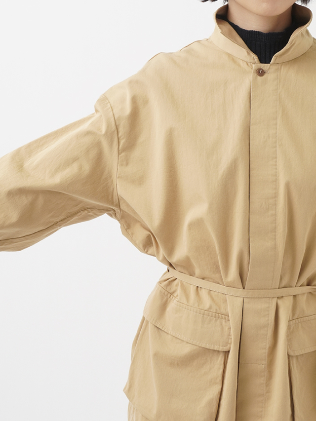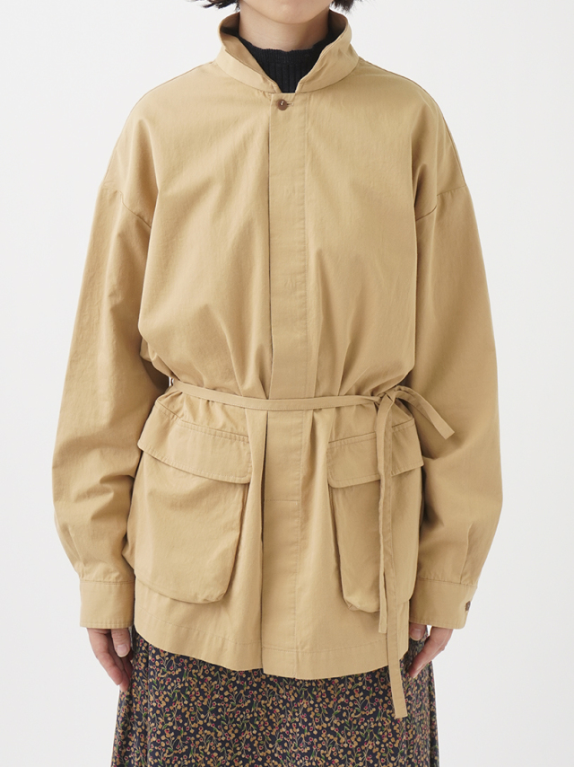 落ち着いた光沢があり、なめらかな手触りが特徴のコットン素材のシャツブルゾン。