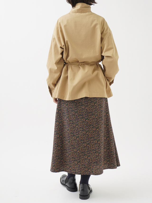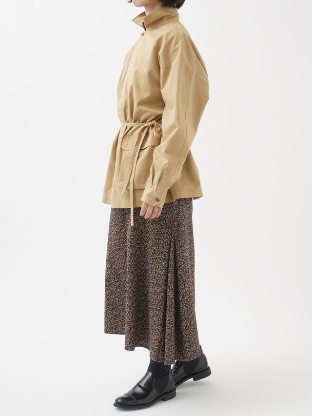 ウエストの細い紐で、シルエットを自由にアレンジできる仕様です。