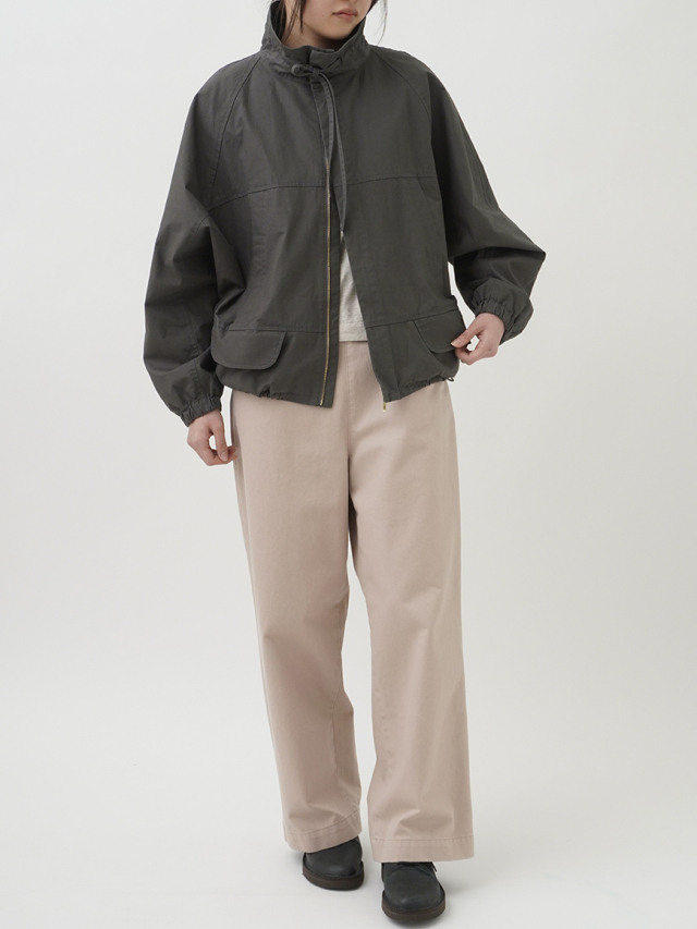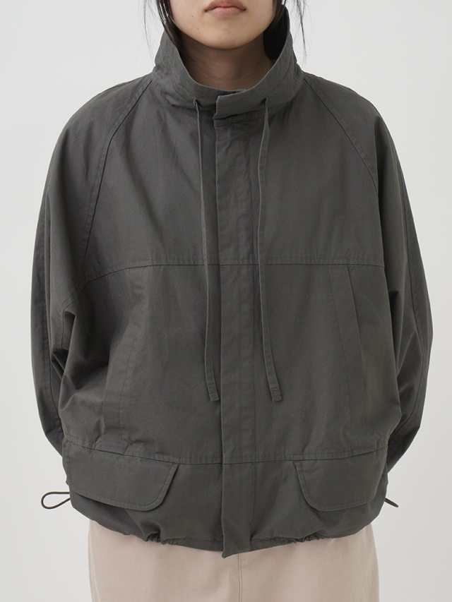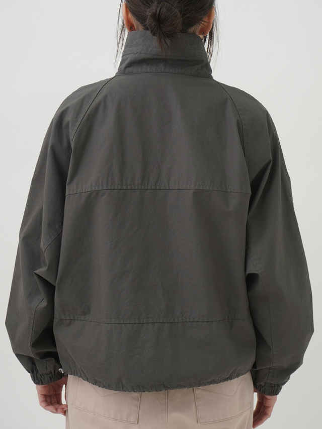 横方向に切替を入れた、丸みを帯びたシルエットのジップアップブルゾン。