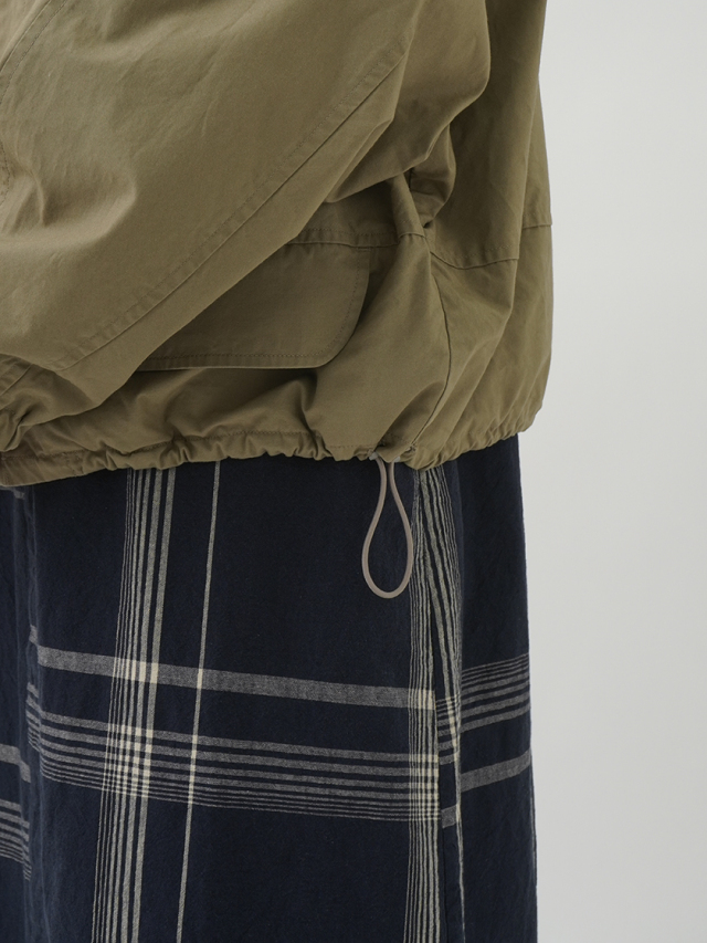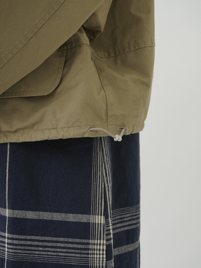 裾のドローコードで形を調整できる、ゆとりのあるサイズ感です。