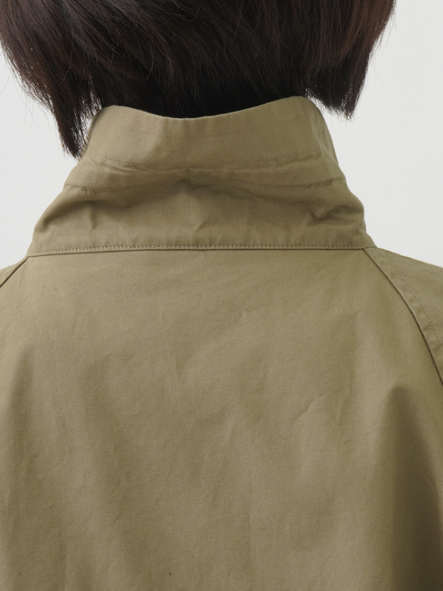 紐の通ったスタンド襟は、その日の気分でギャザーを寄せたり、結んだりしてアレンジできます。