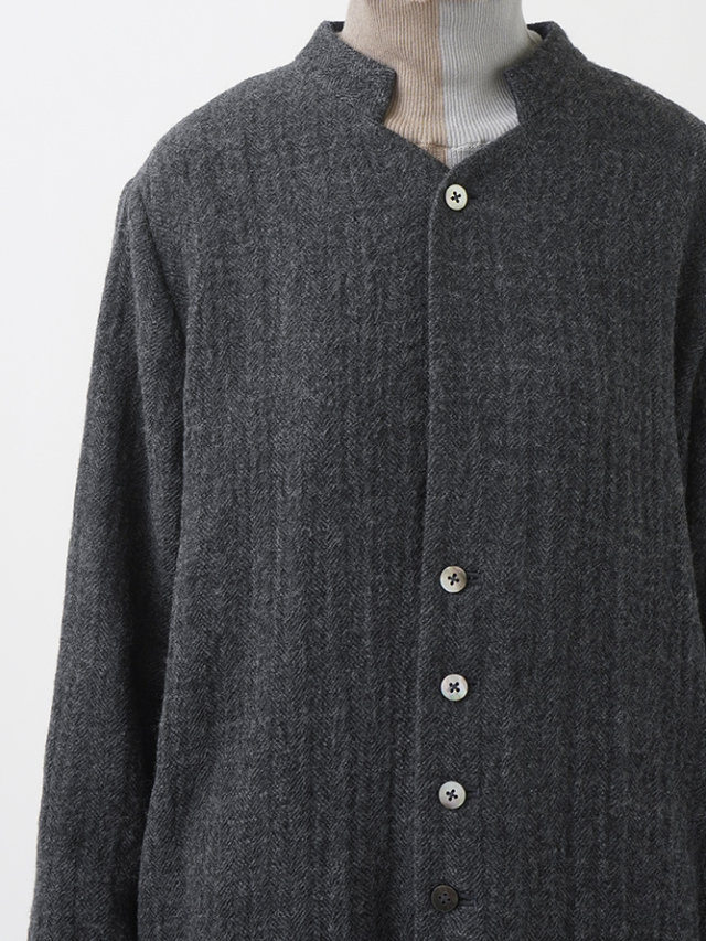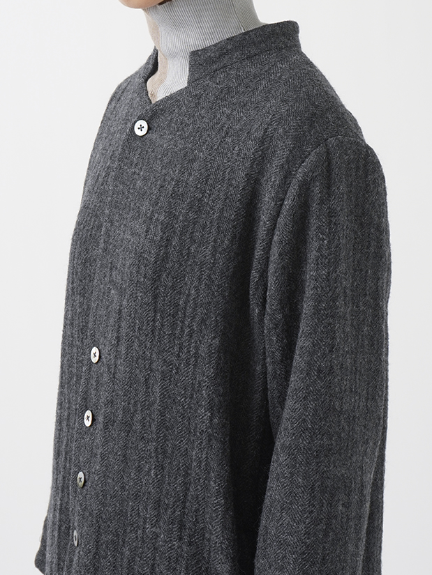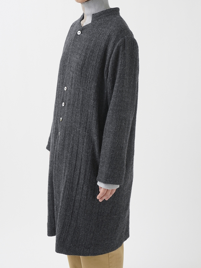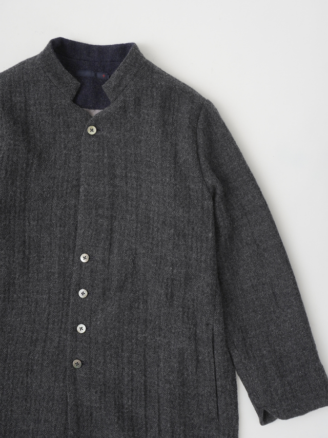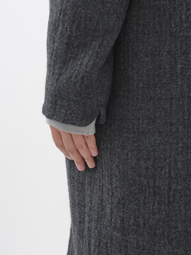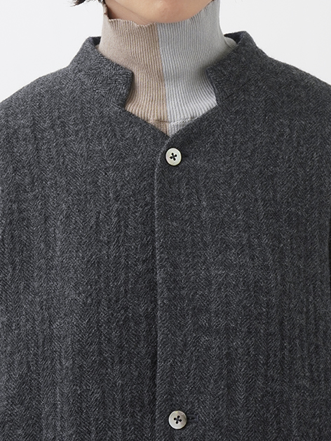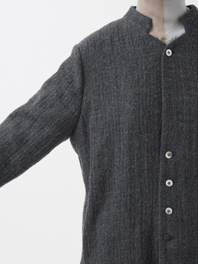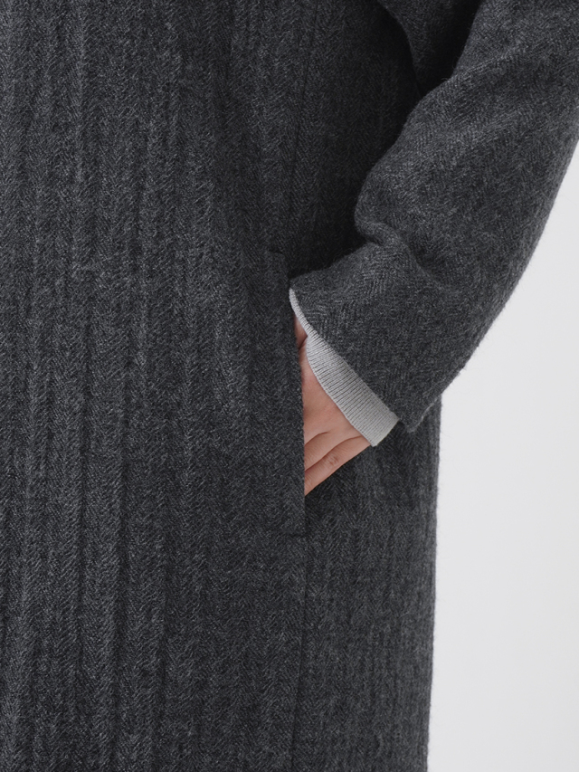 繊細な陰影のあるヘリンボン織のウールコート。