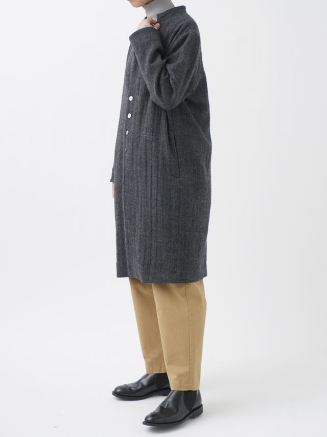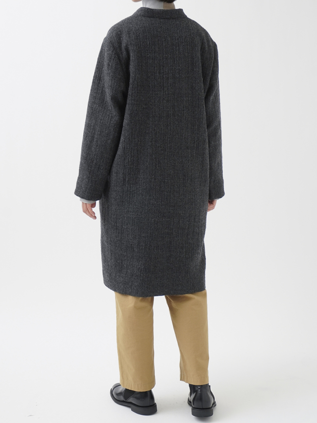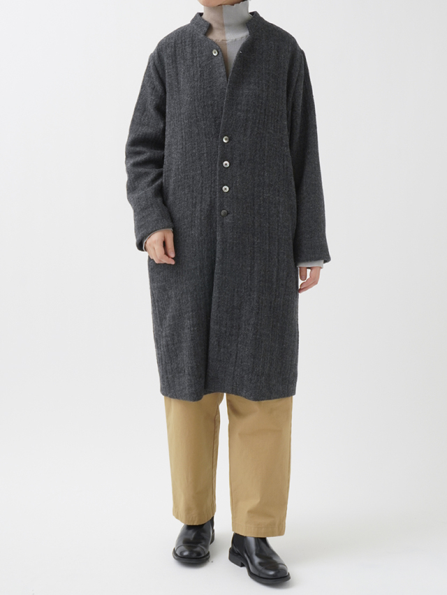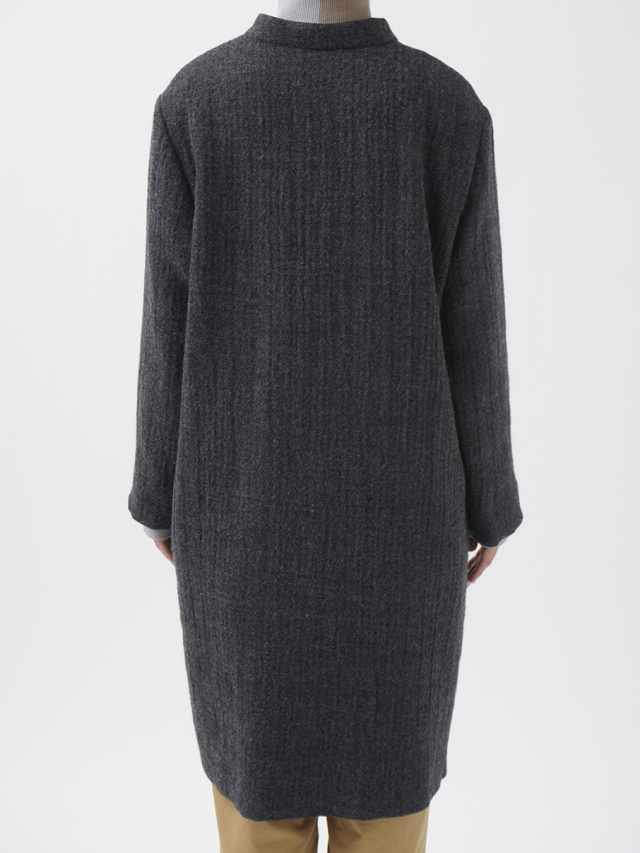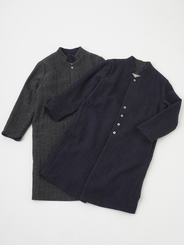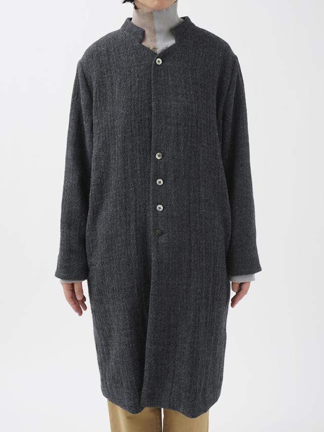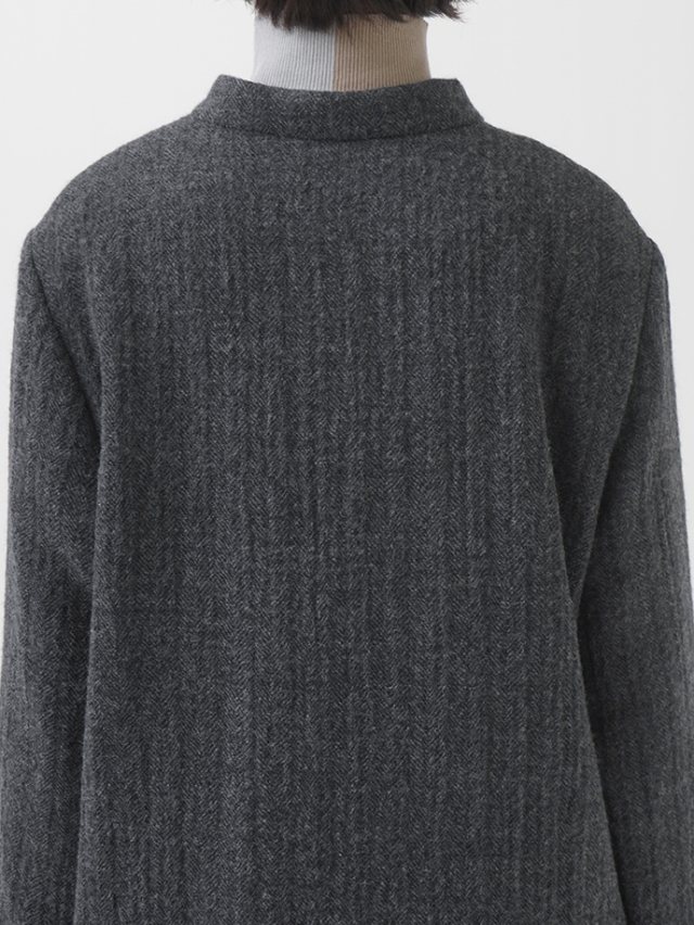 繊細な陰影のあるヘリンボン織のウールコート。