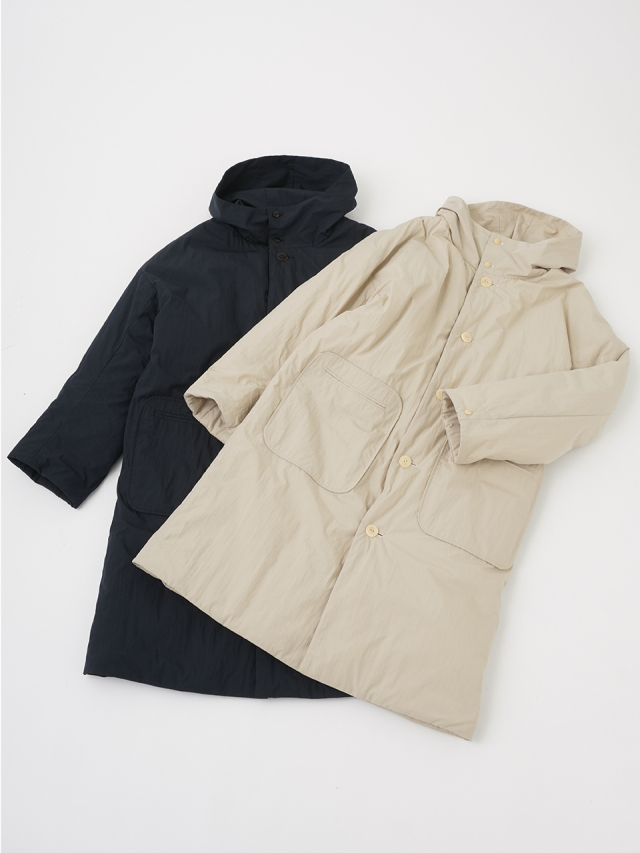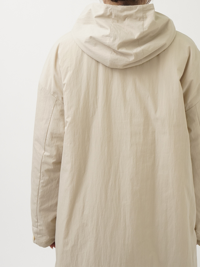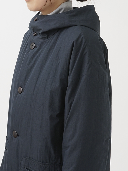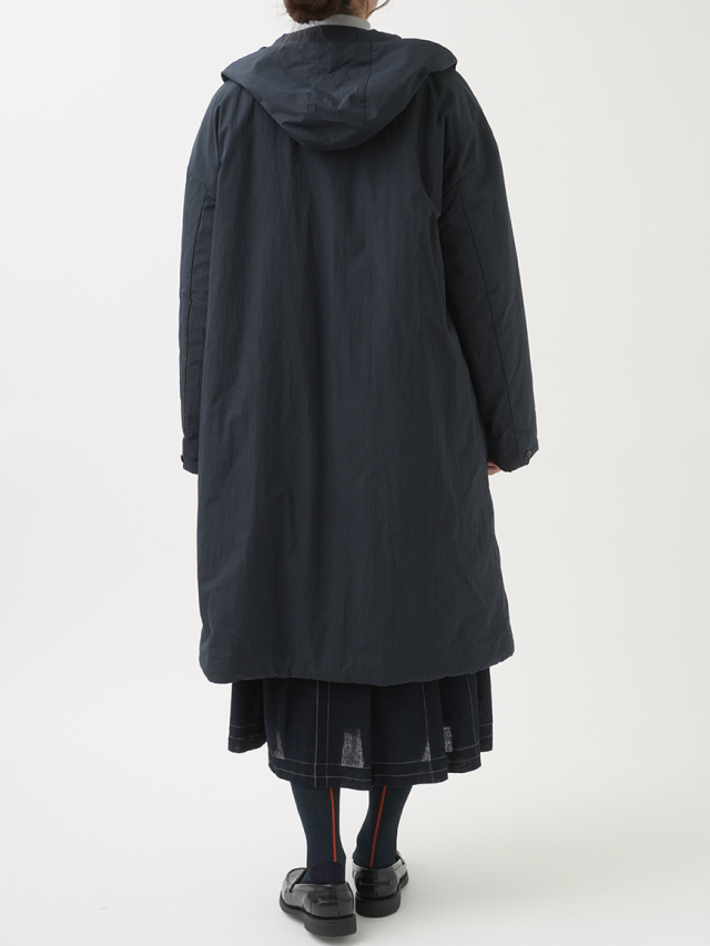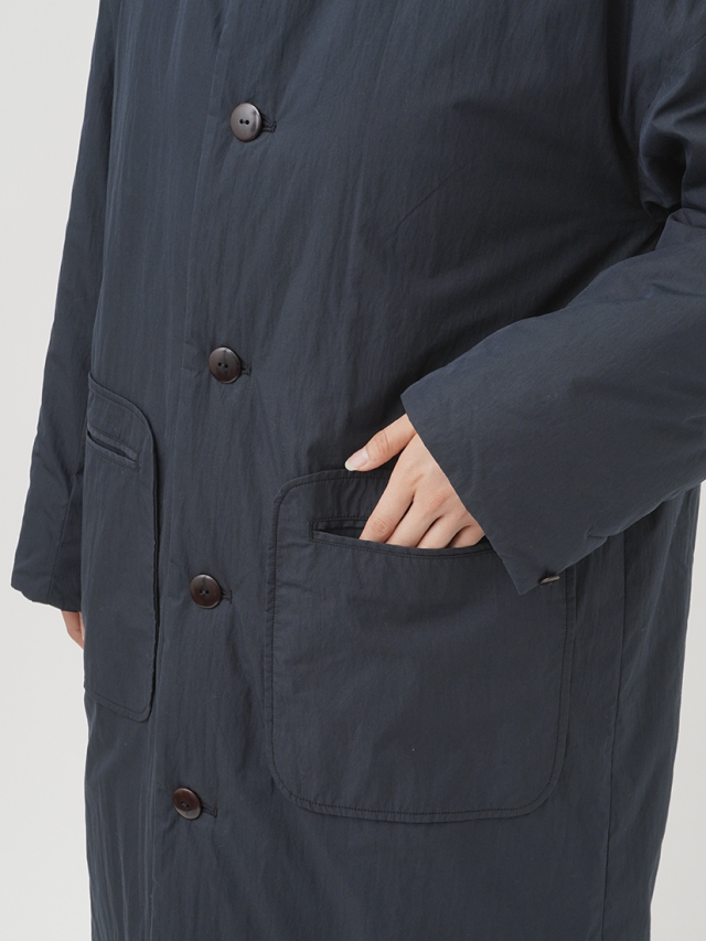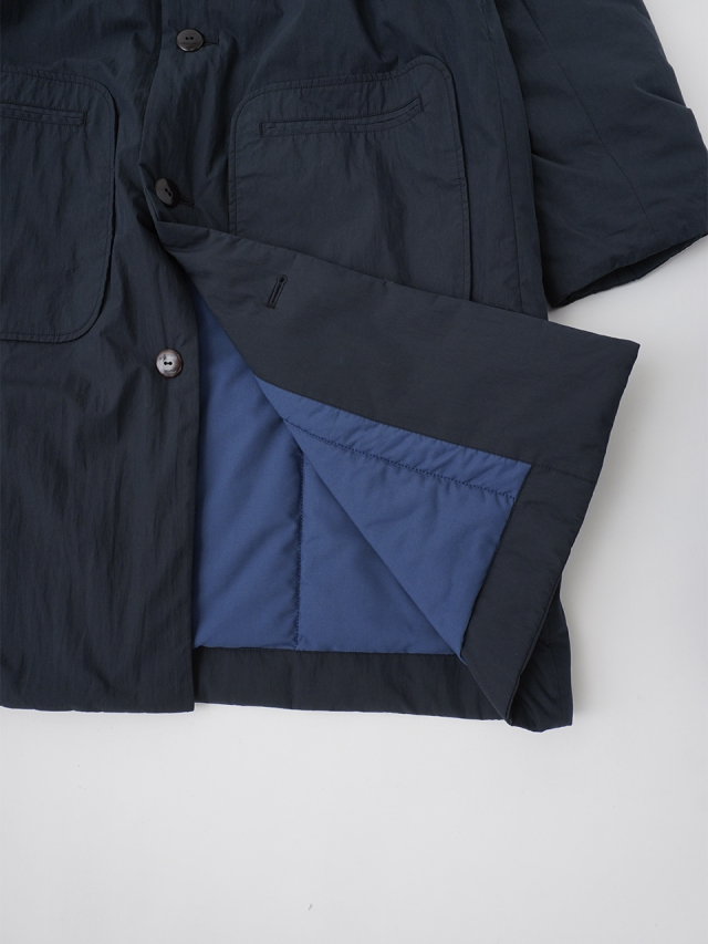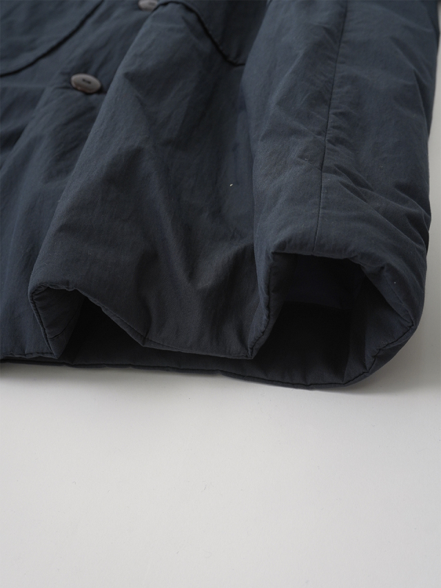 すっきりとした縦長シルエットが活きるよう、表側にステッチの入らないキルティング加工を施しました。