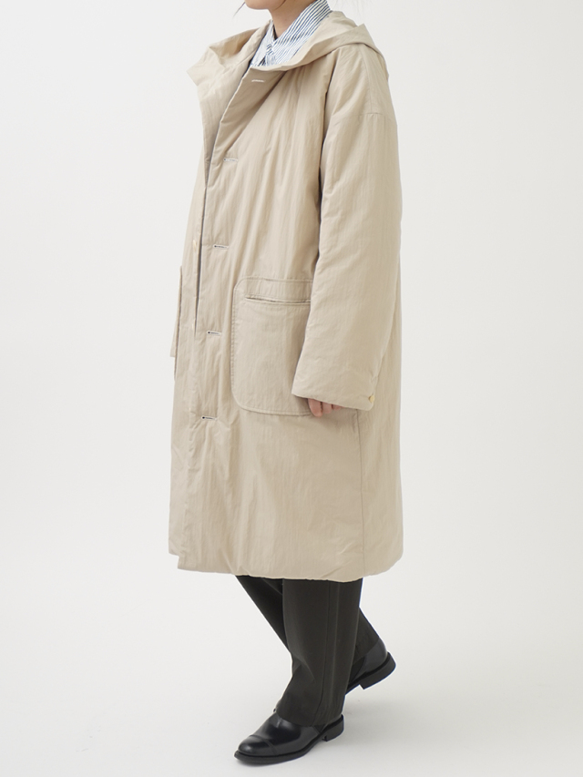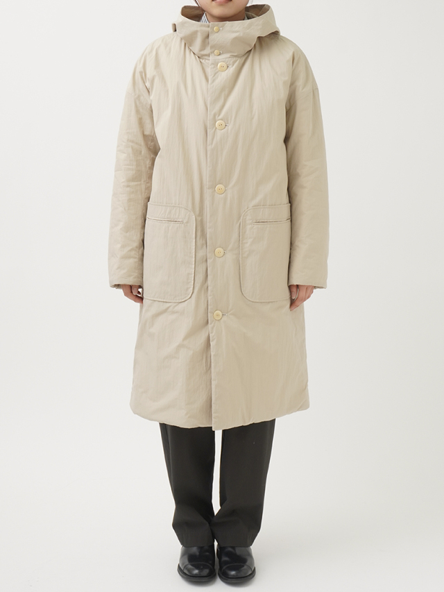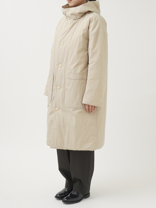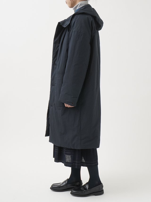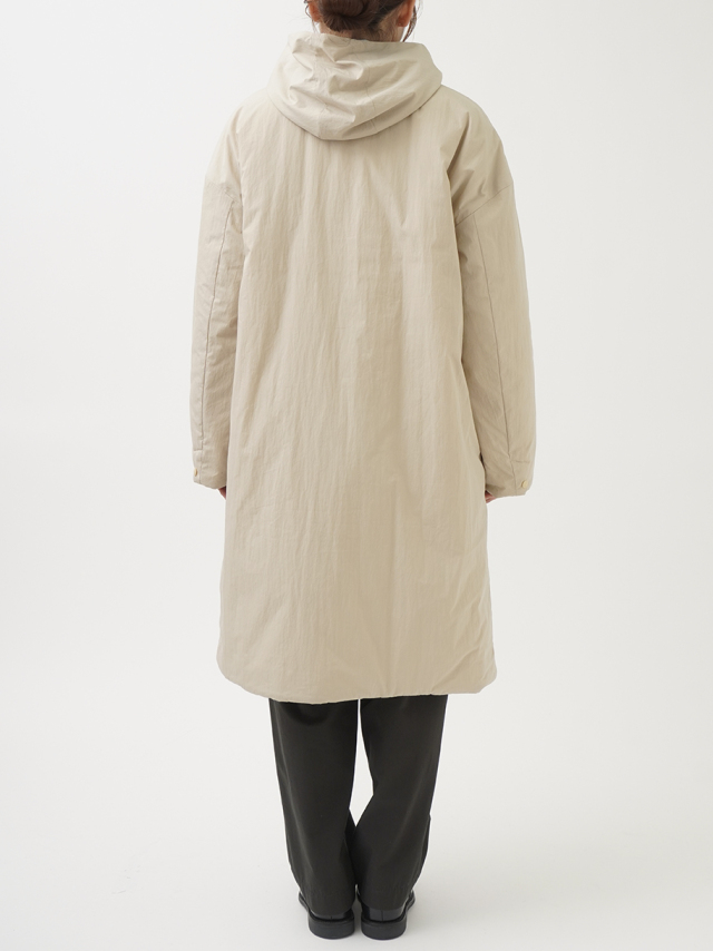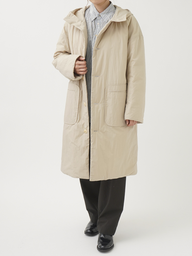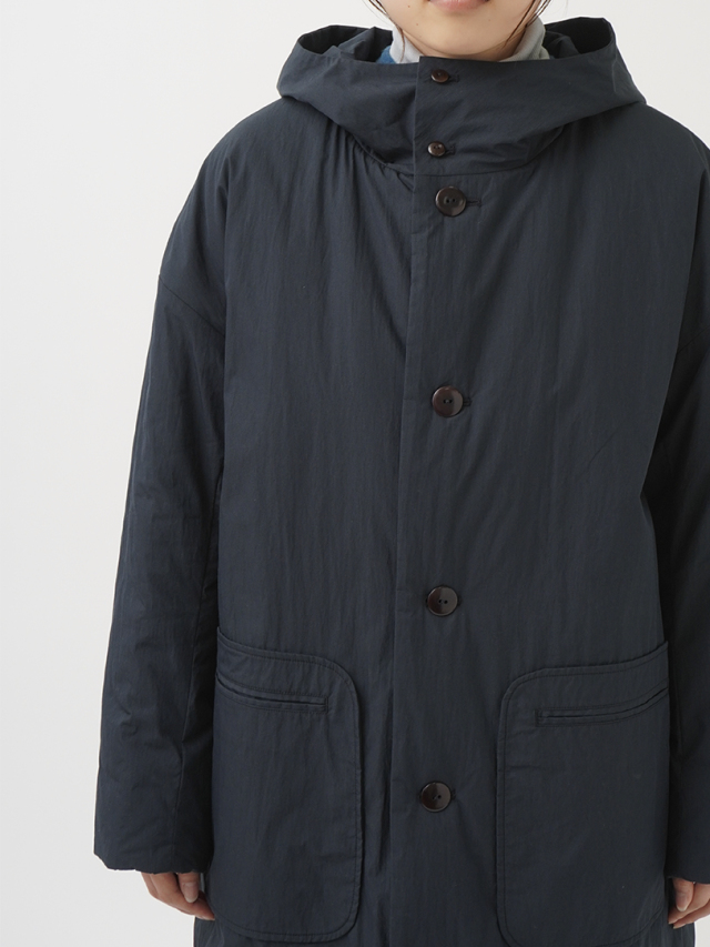 すっきりとした縦長シルエットが活きるよう、表側にステッチの入らないキルティング加工を施しました。