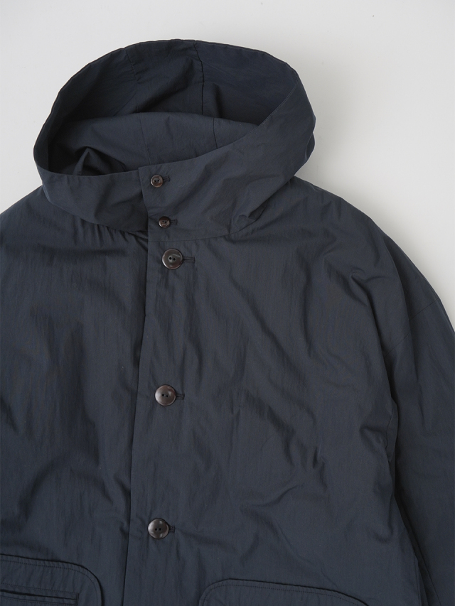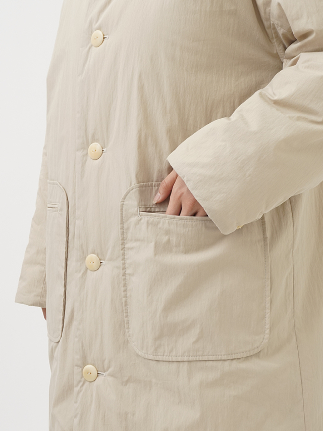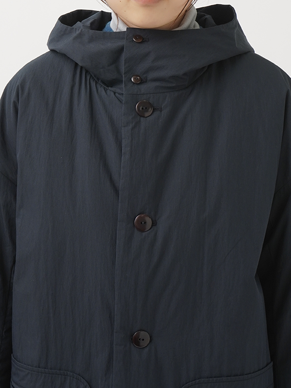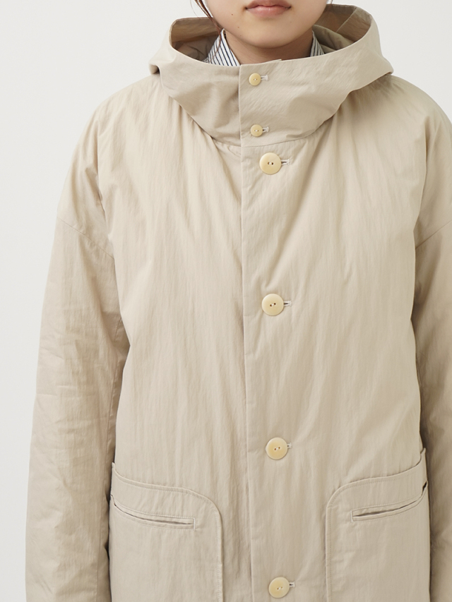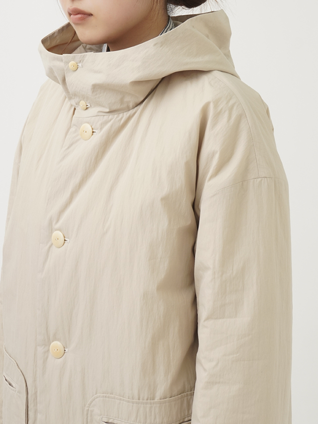 高密度に織り上げた綿ナイロン素材のキルトコート。