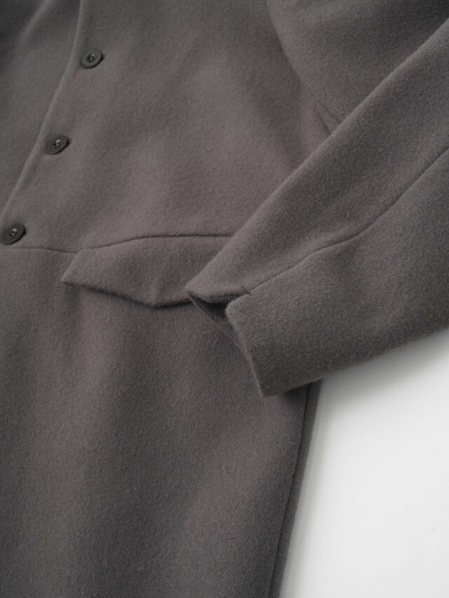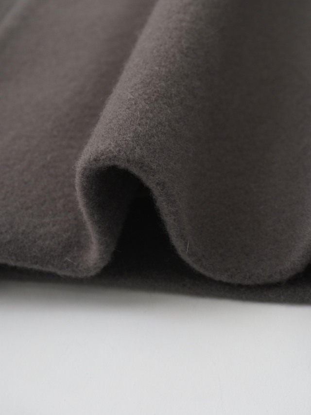 ウール生地を縮絨加工してから、起毛し同じ長さに刈り込むビーバー仕上げによる、滑らかな風合いと心地よい手触りが魅力です。