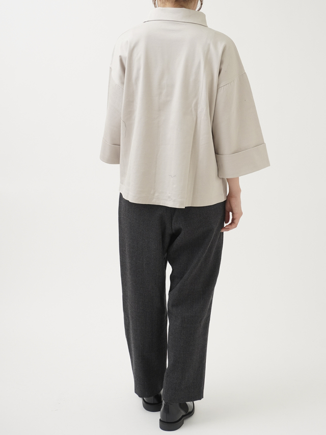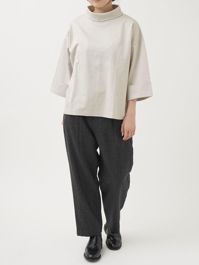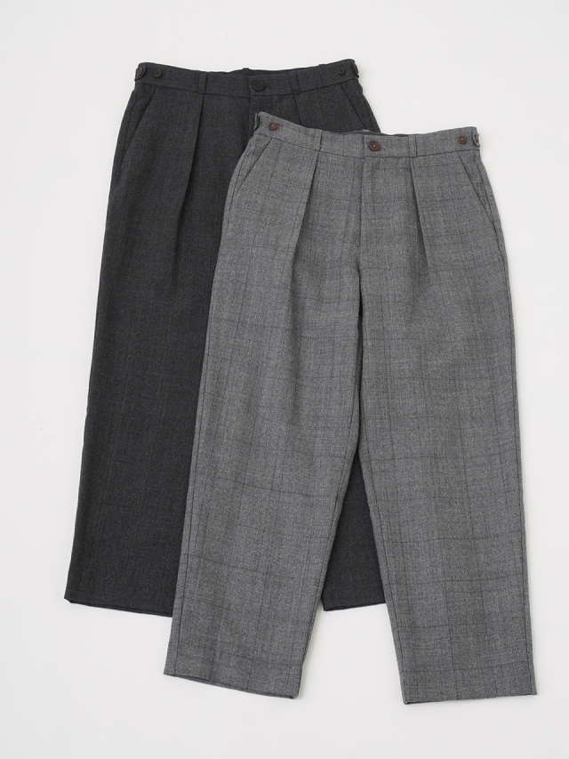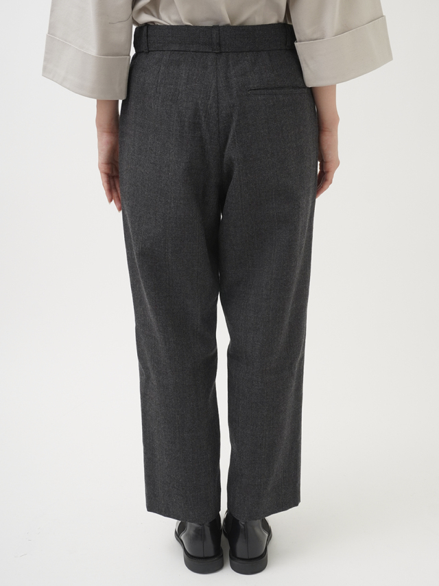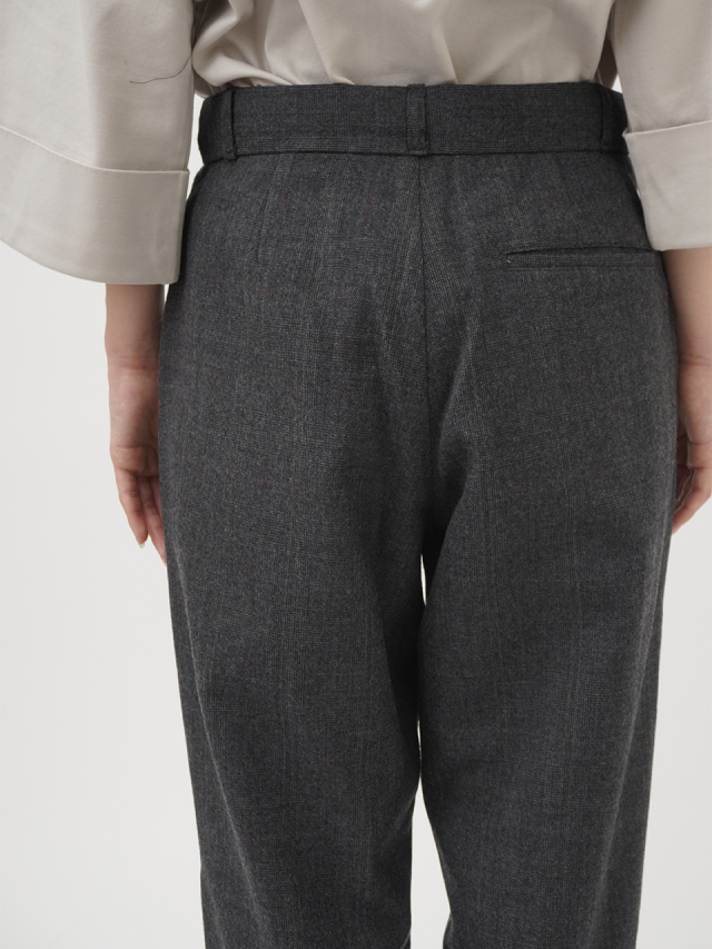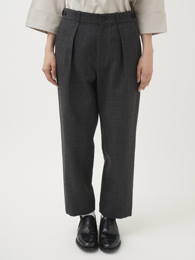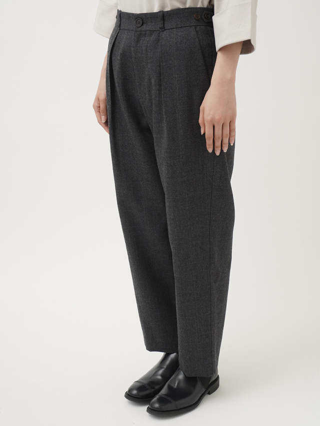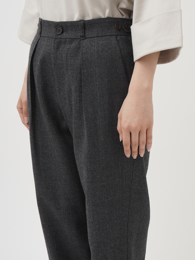 タックを入れたゆとりのある腰まわりの、すっきりとしたテーパードシルエットです。