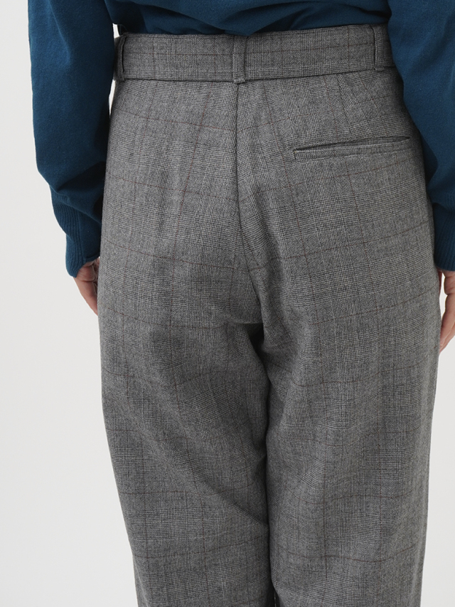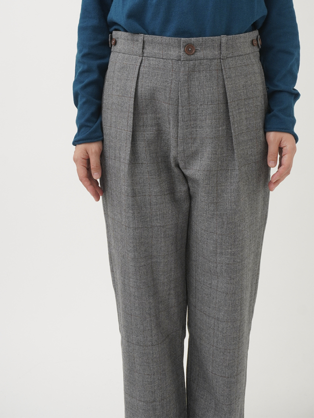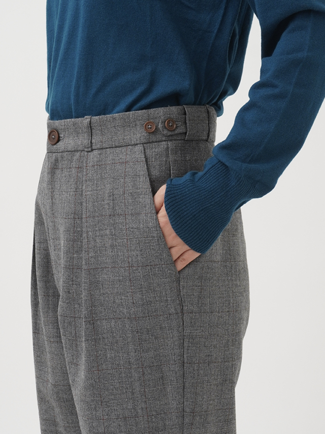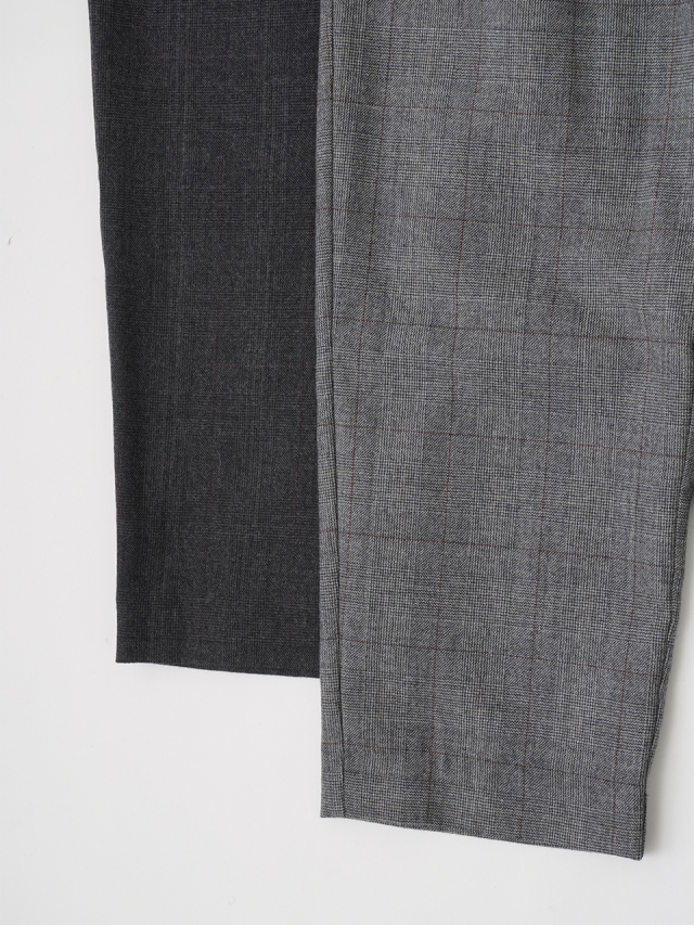 繊細なラインで構成されたグレンチェック柄のパンツ。