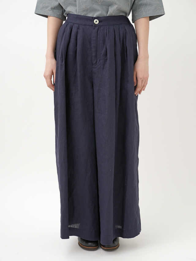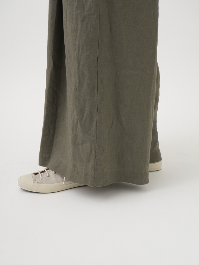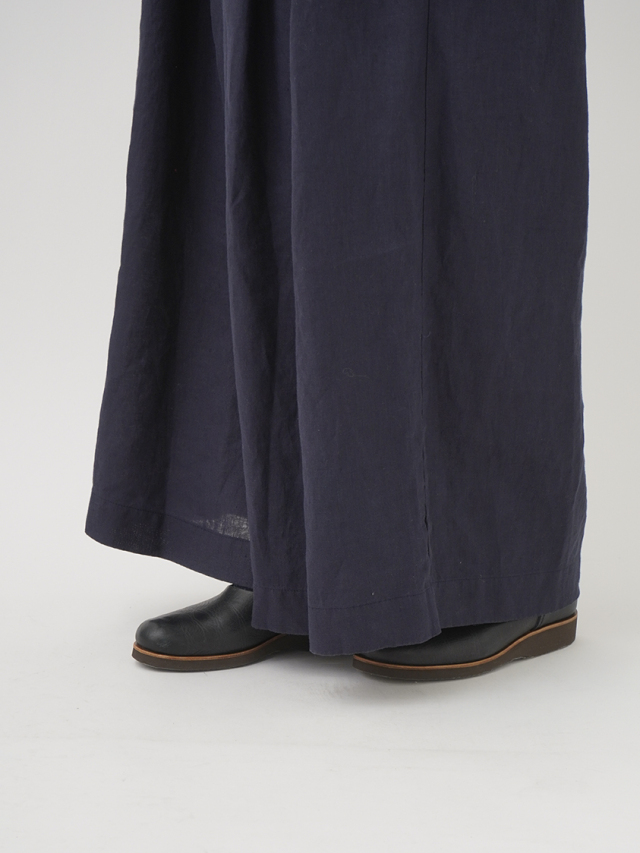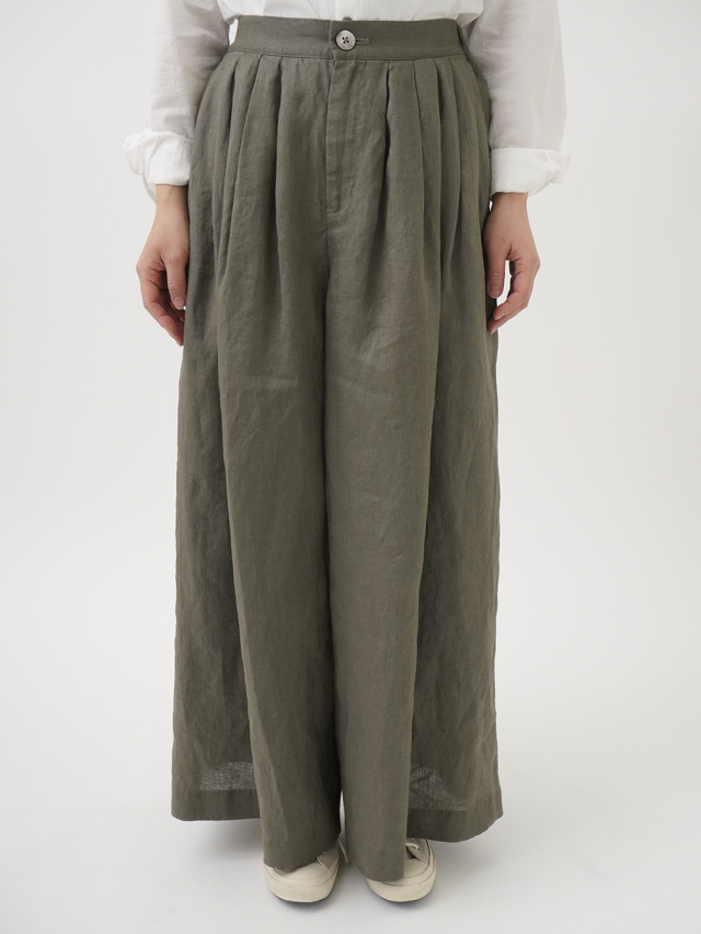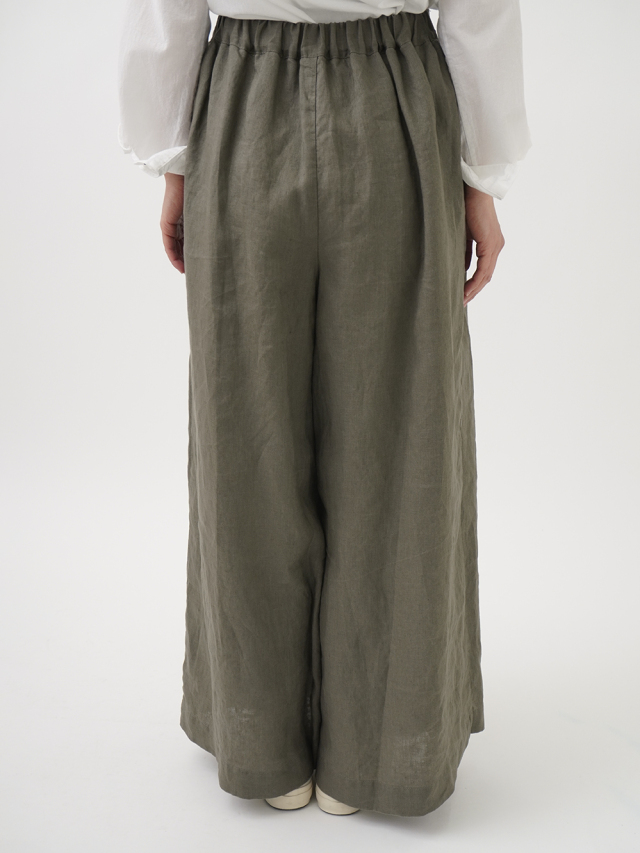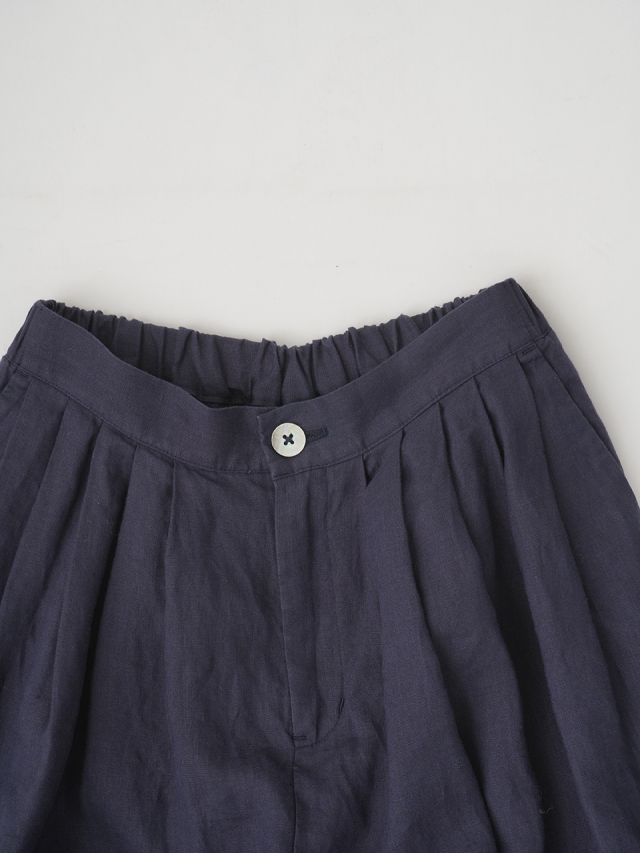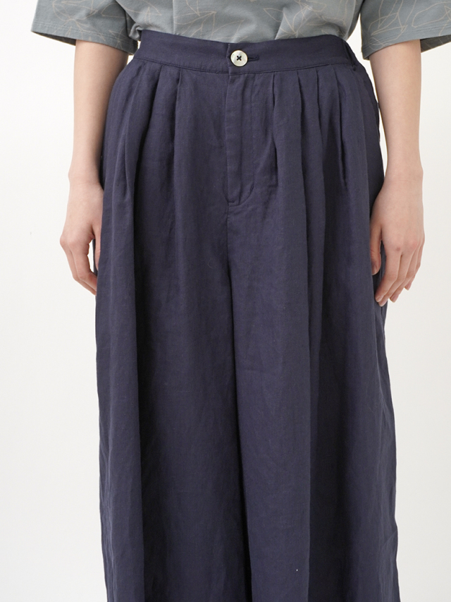 前ウエストまわりにタックを細かく入れた、スカートのように広がる立体的なシルエット。