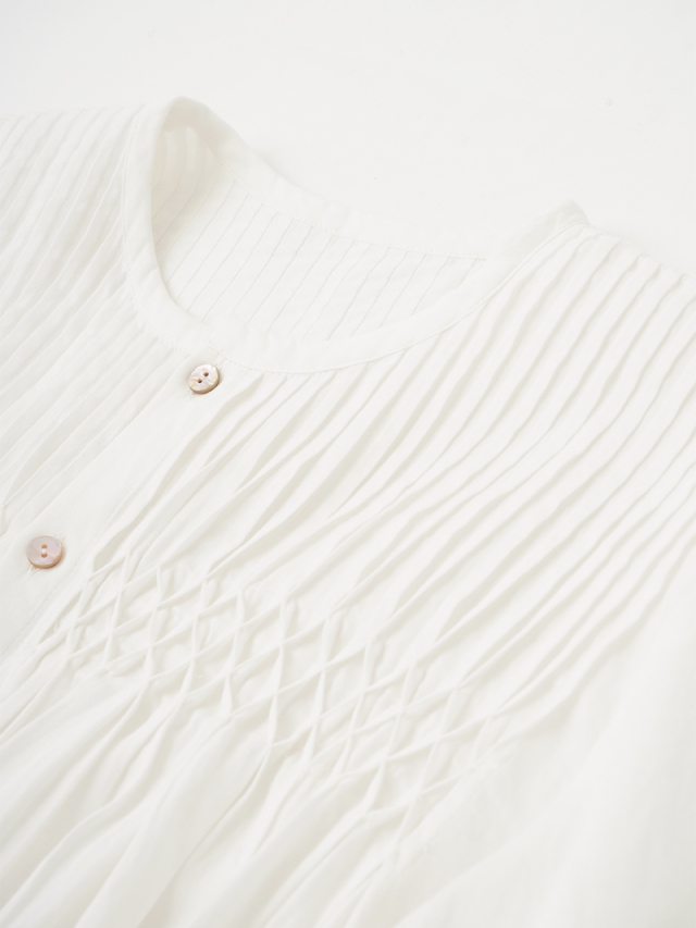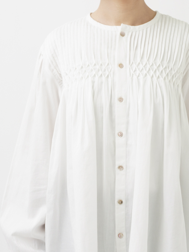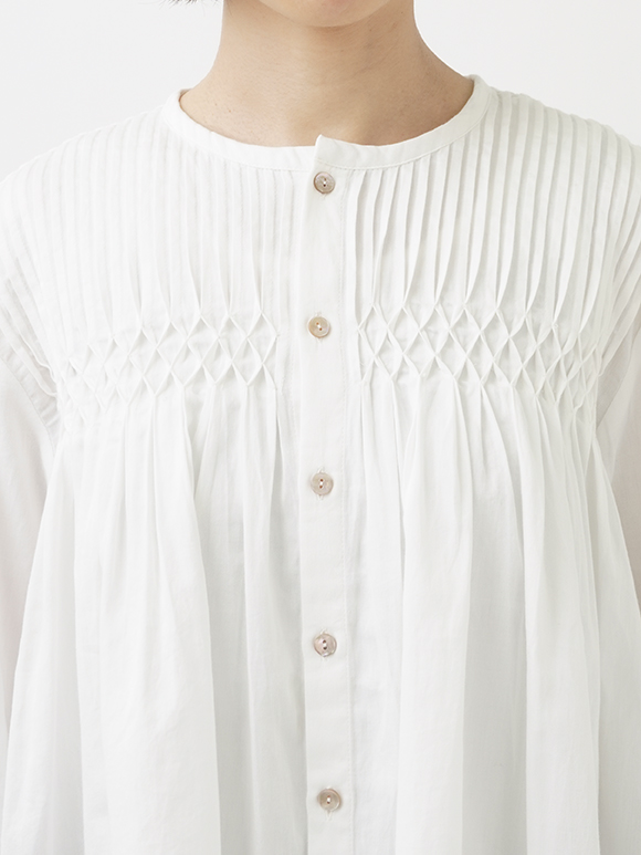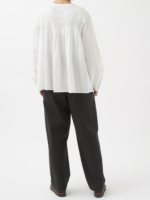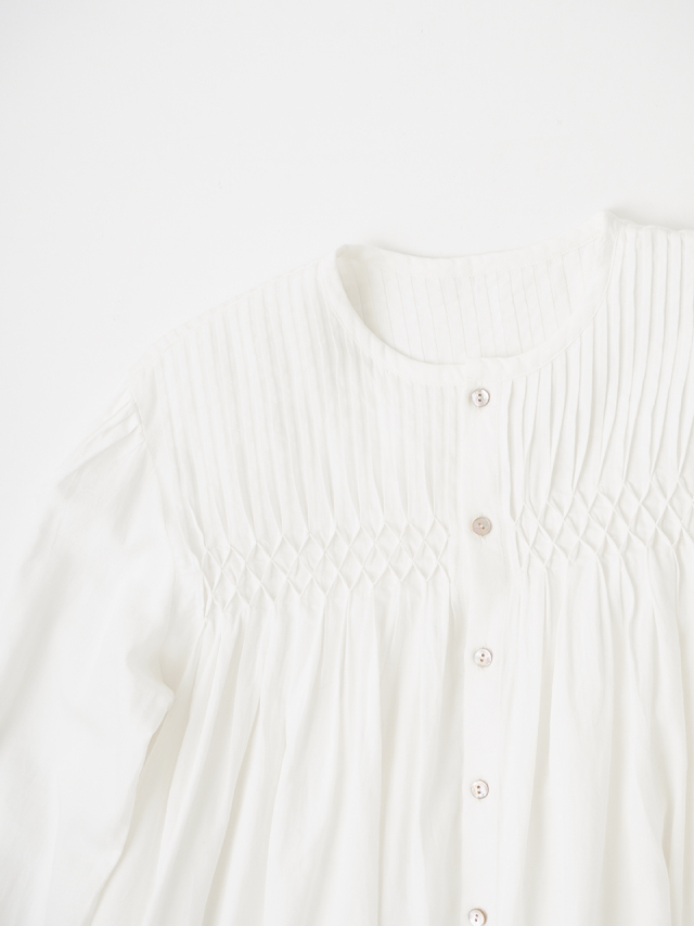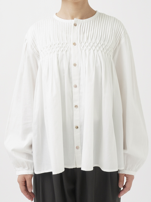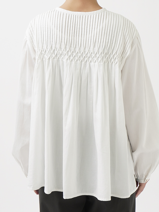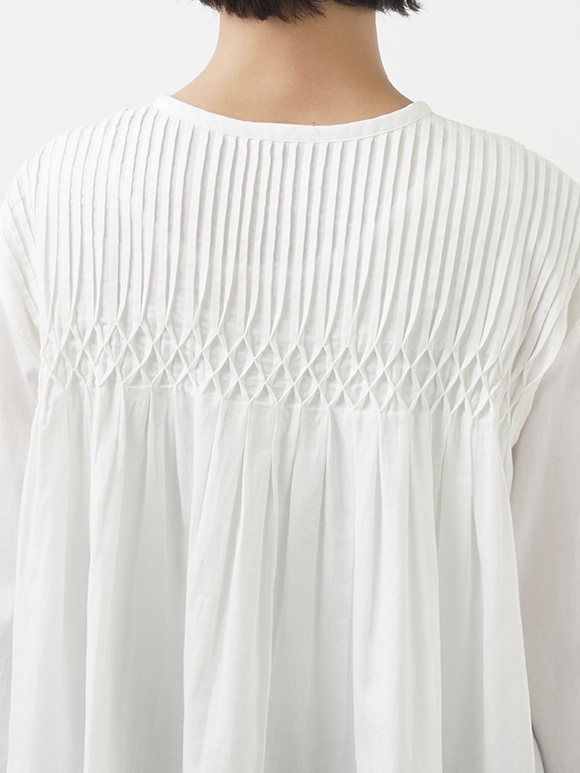 繊細な手仕事のぬくもりが宿るタック&スモッキングブラウス。