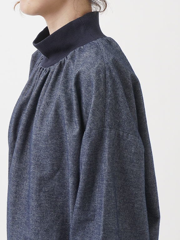 リブ仕様の袖、タートル襟がカットソー感覚で着られる気軽さがあり、一枚着としても活躍する一枚です。