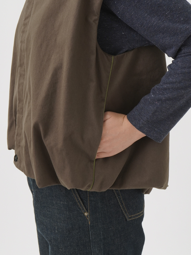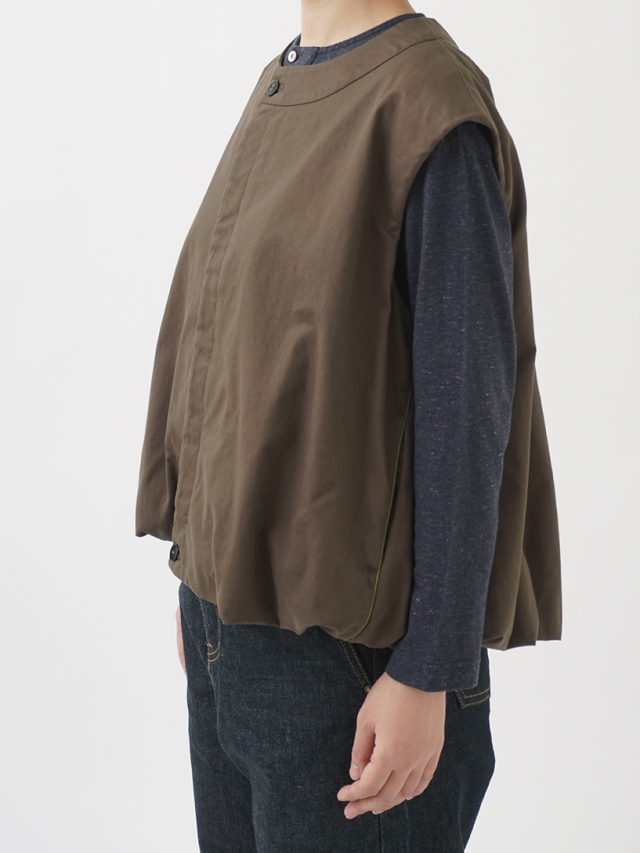 まるみのあるバルーンシルエットがユニークなベスト。