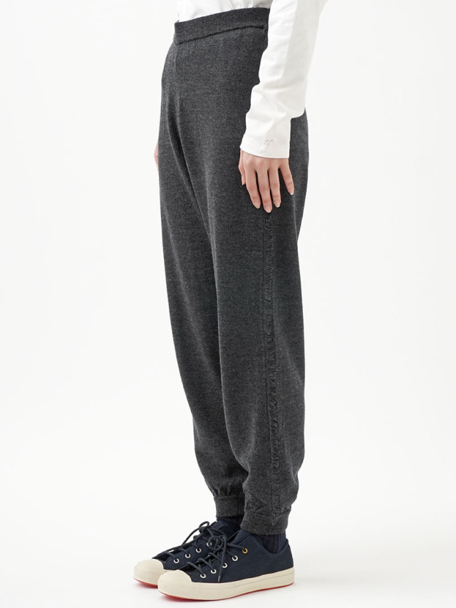 肌触りのなめらかな上質なメリノウールを使用したデザインニットパンツ。
