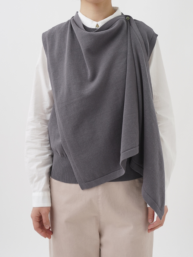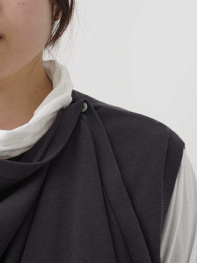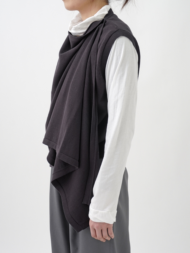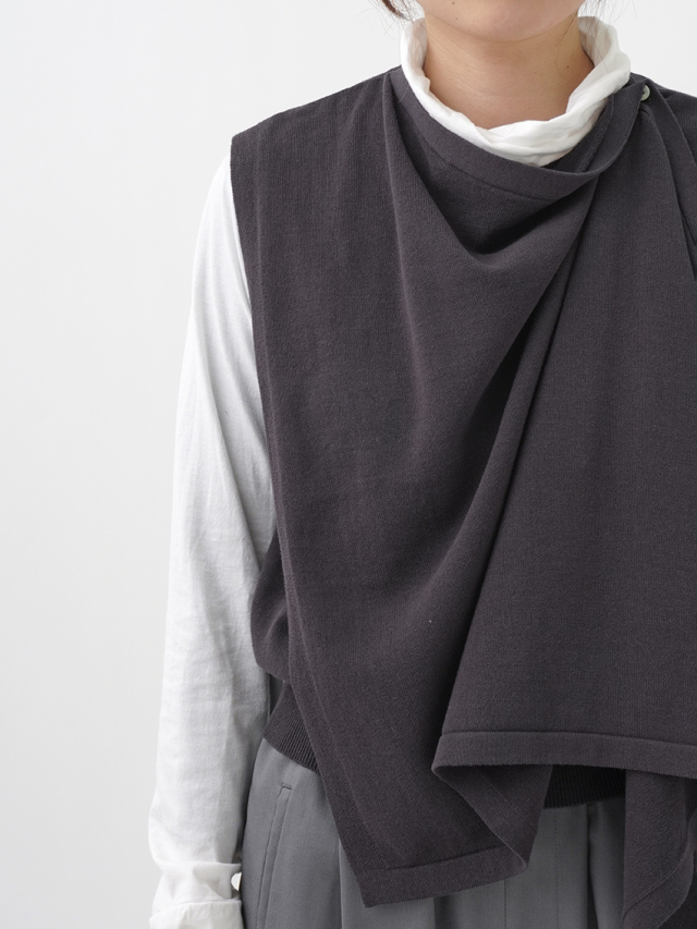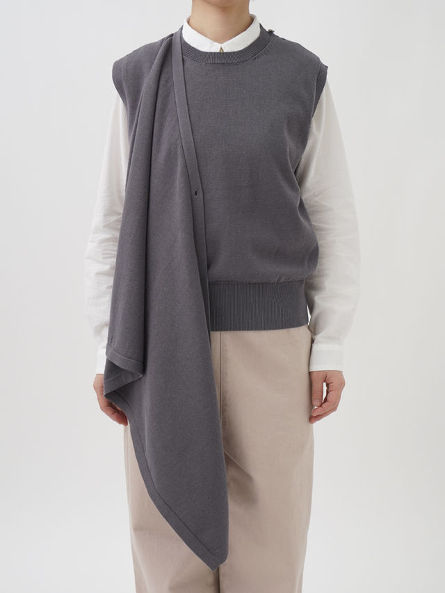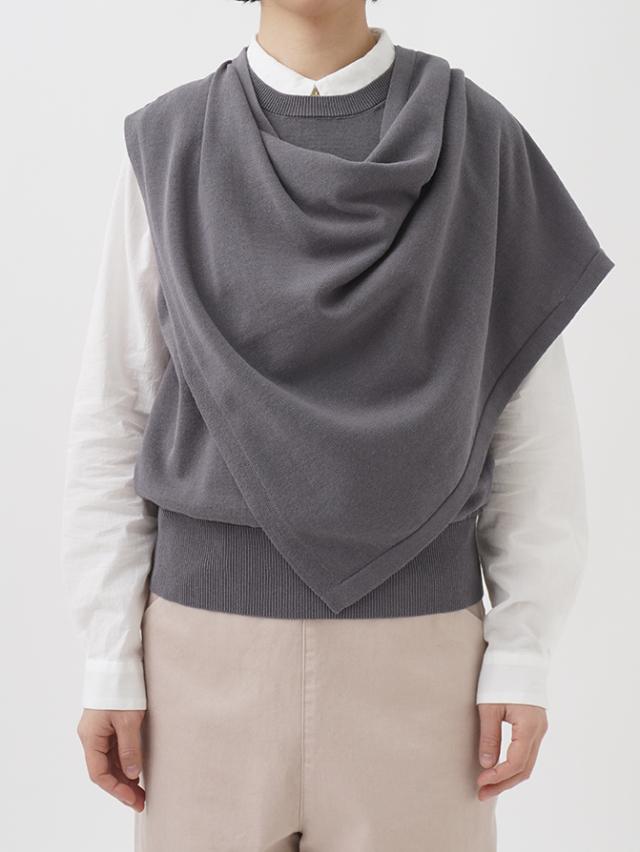 着方のアレンジが楽しめるマフラー付きニットベスト。