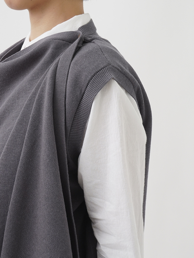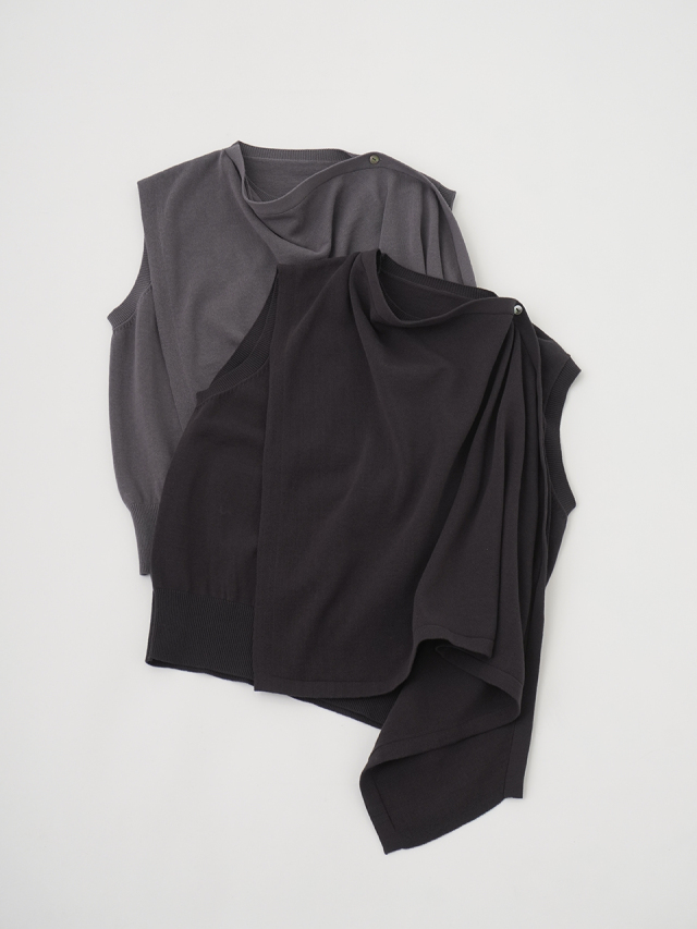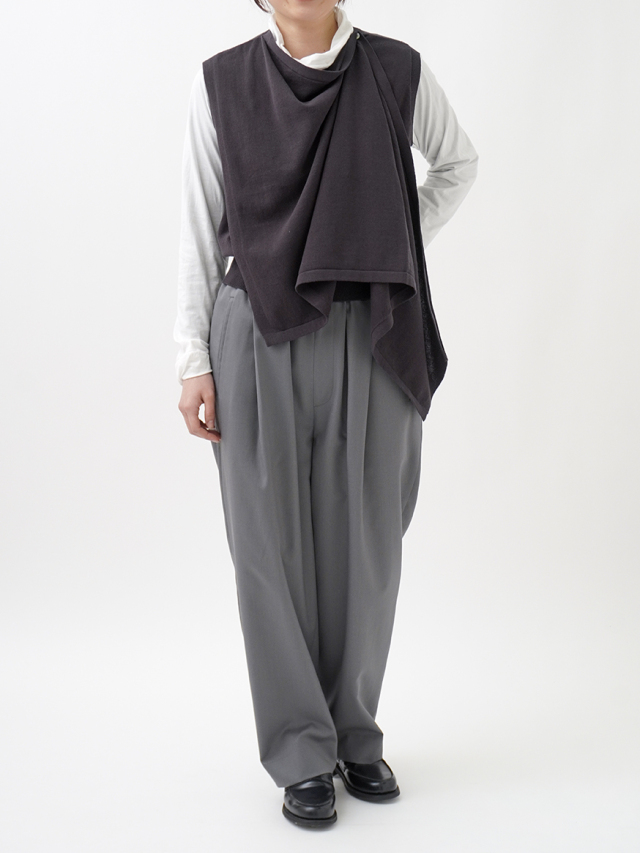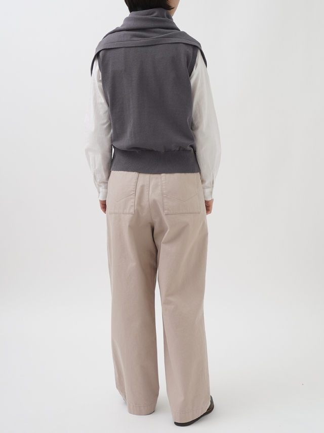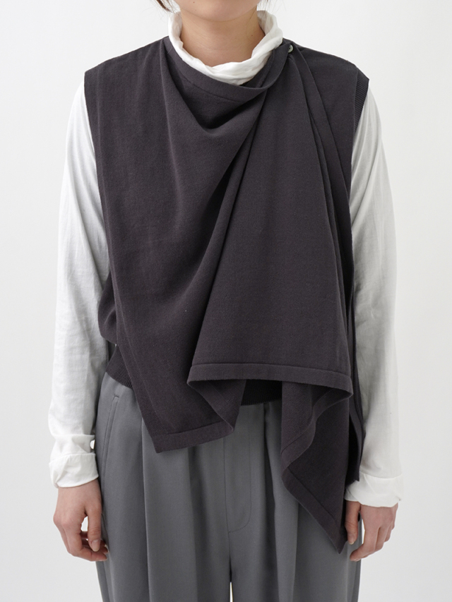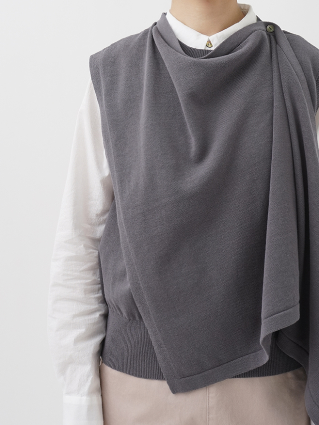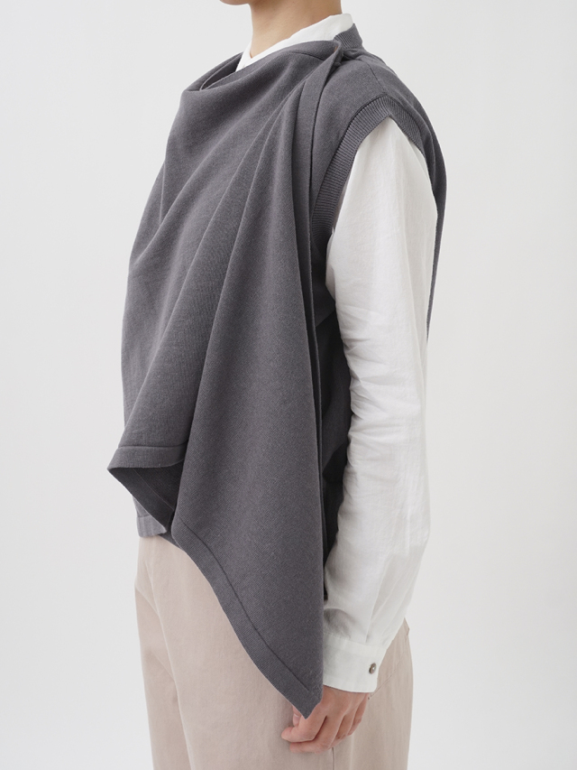 着方のアレンジが楽しめるマフラー付きニットベスト。