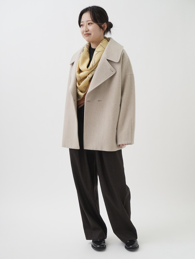 軽く暖かな肌触りのウールシルク素材を使い、大判サイズに仕立てました。