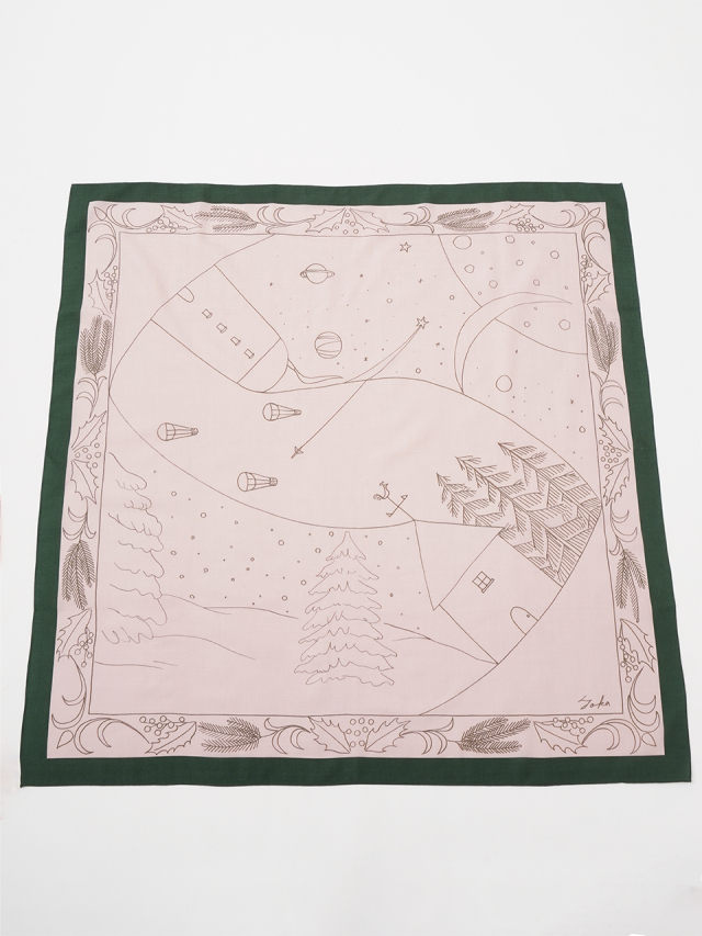そんな様子をイメージして描いた柄のスカーフ。